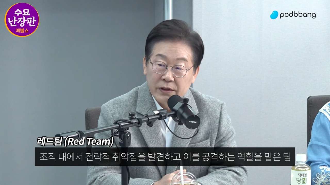 이재명 : 써서 반드시 간관이라고 하는 걸 두고 그래서 당나라가 아주 튼튼하게 왕조가 오래 갔어요. 최근에 글로벌 기업들도 보면 레드 팀을 일부러 만들어요. (최욱 : 네) 근데 이게 그게 없으면 위험에 빠지죠.