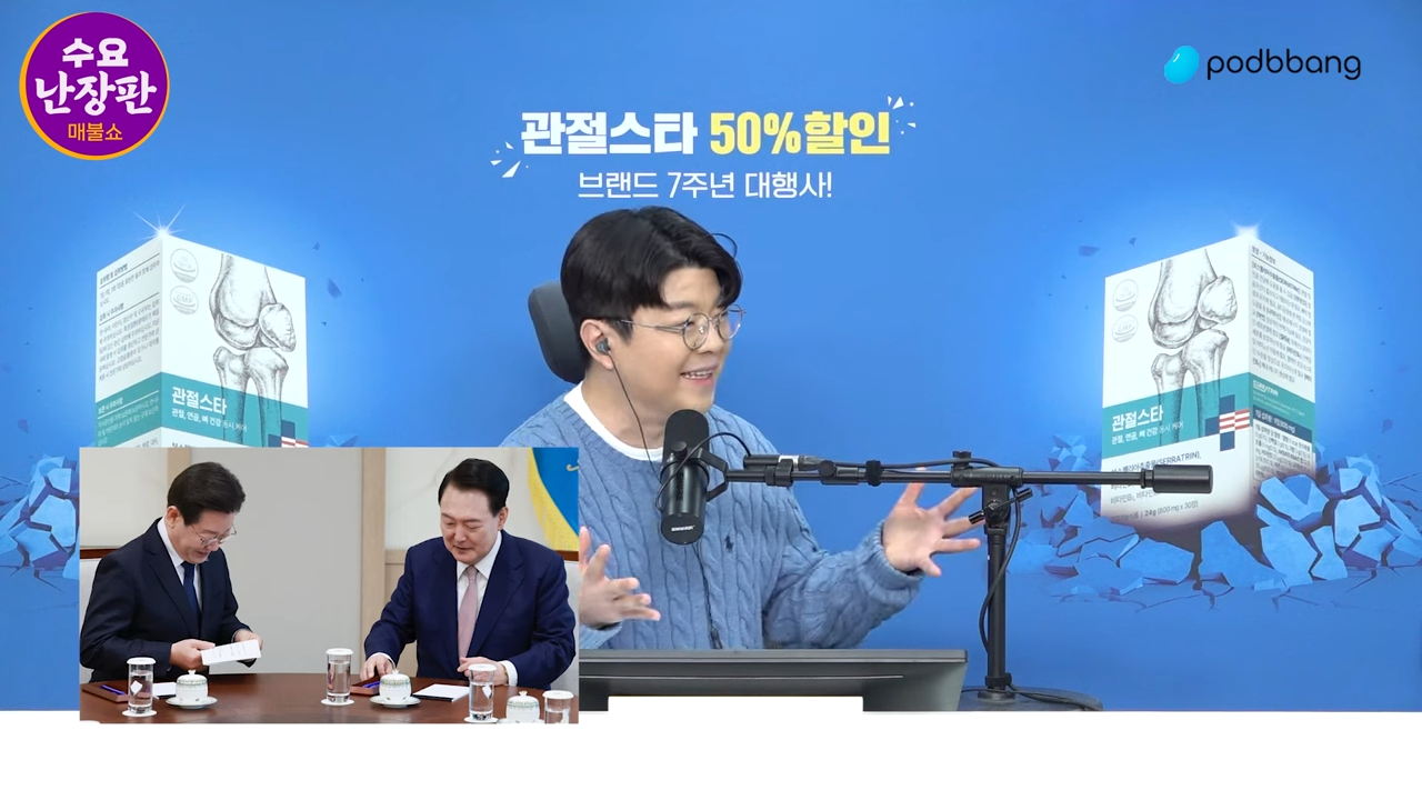 이재명 : 대체적으로는 오랫동안 서로 허심탄회하게 얘기를 안 해봤기 때문에 약간 곡해나 오해들이 좀 있어요. 예를 들면 우리 최욱 선생이 '저 이재명 대표는 보니까 고집스러운 데다가 남의 말 절대 안 들을 것 같고' 뭐 그런 생각 있잖아요.
