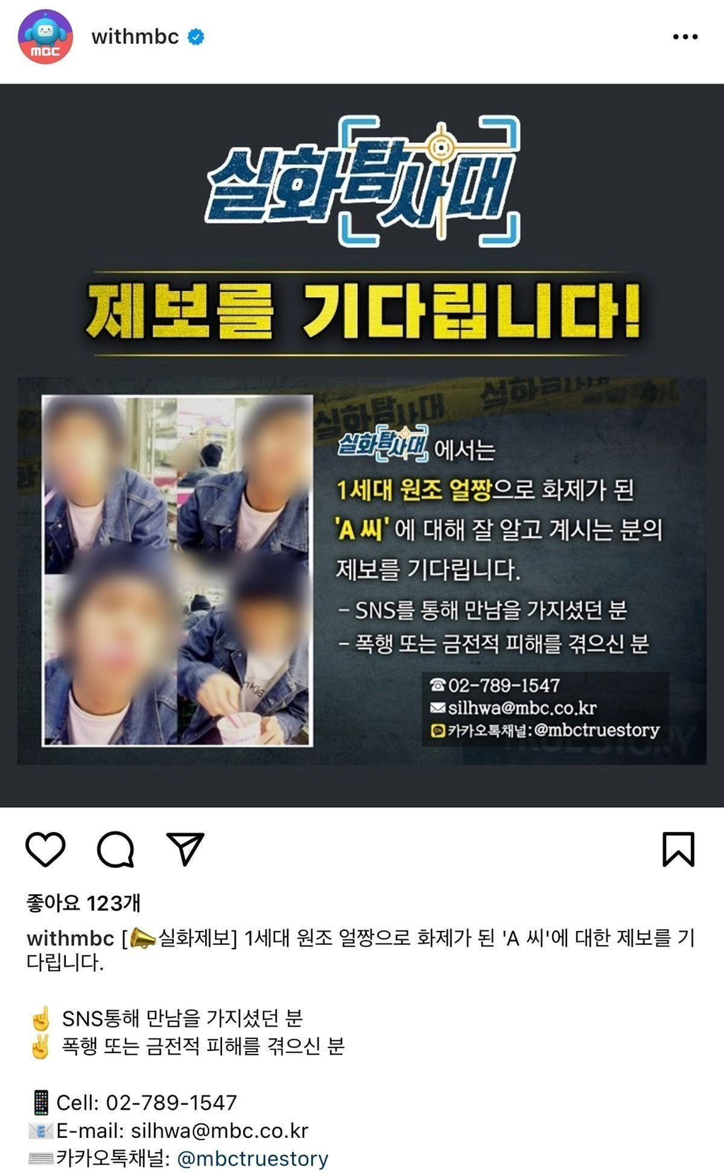갑자기 실화탐사대측에서 설우석에게 피해당한 사람들을 찾는 글이 올라옴