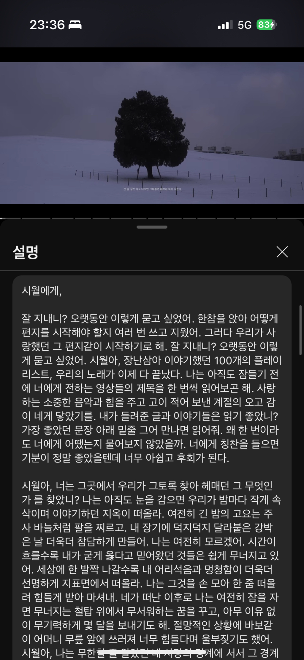 누군가에게 쓰는 편지 같은 내용이 있음