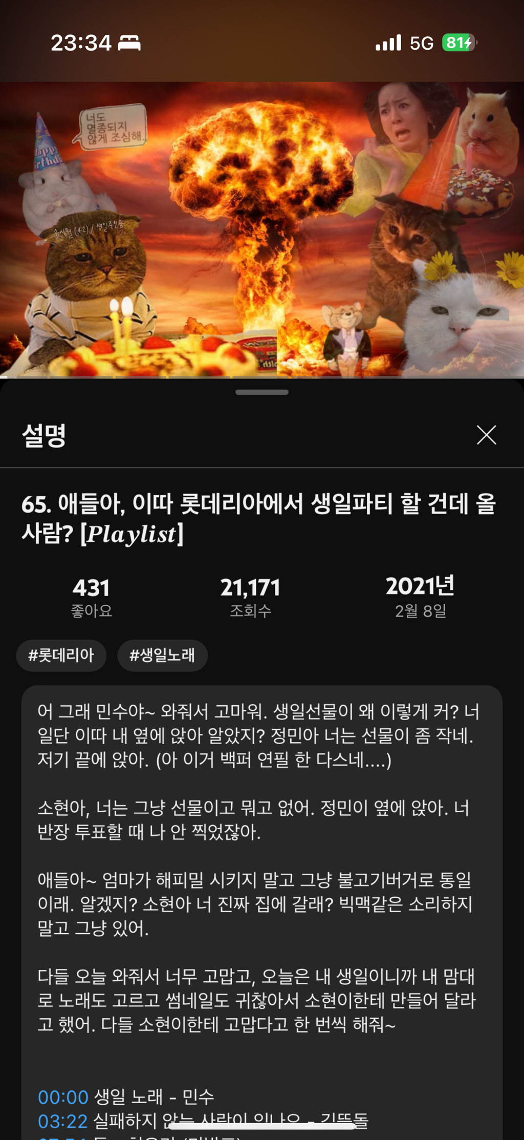 그리고 얼마전에 0번 플레이리스트가 올라오고