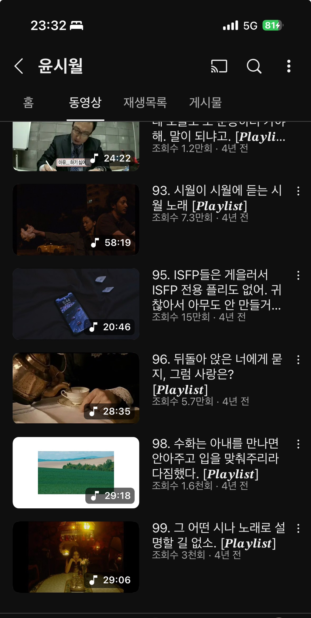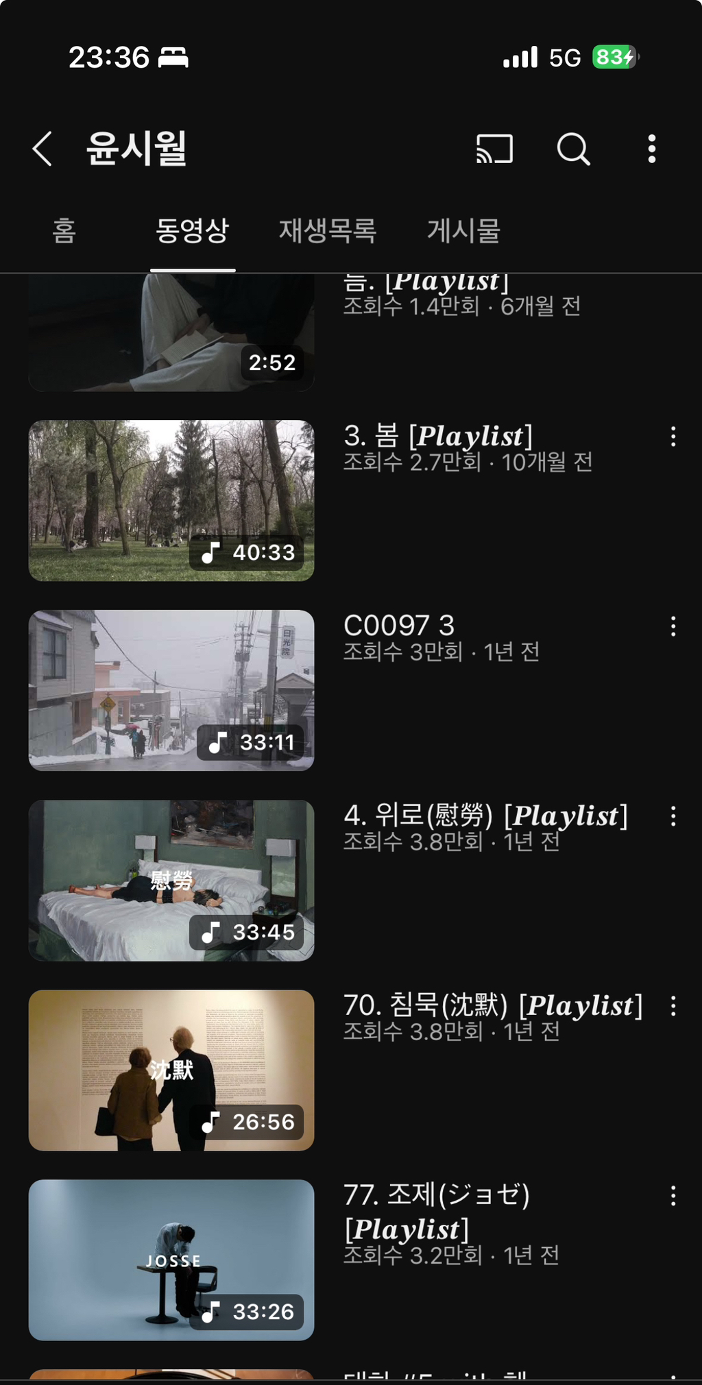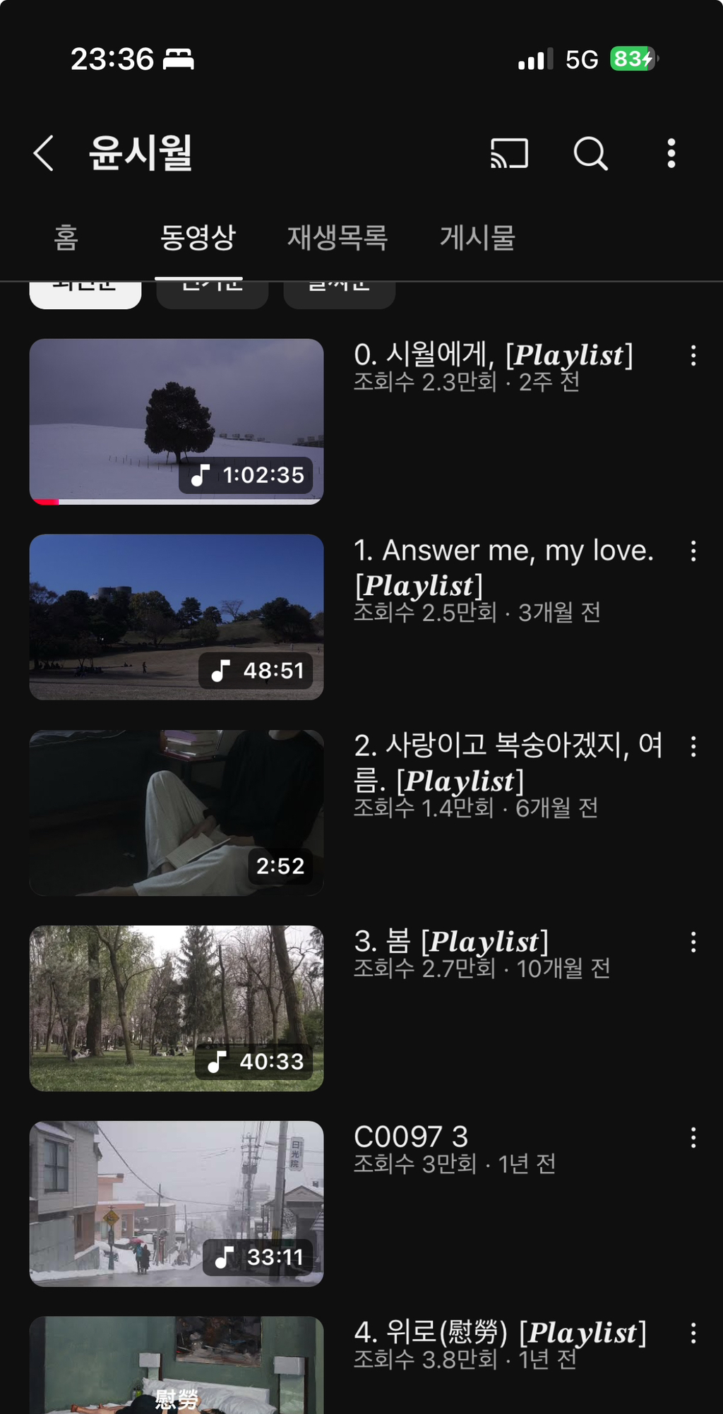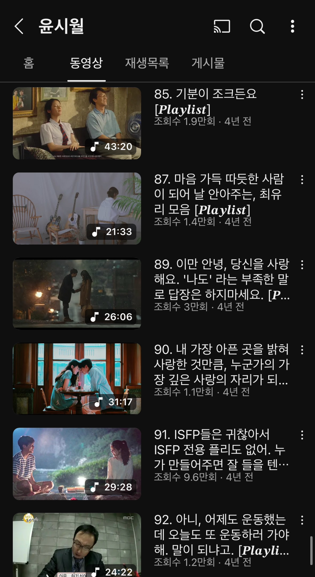 유튜브에서 플리 찾아보는거 좋아하는데