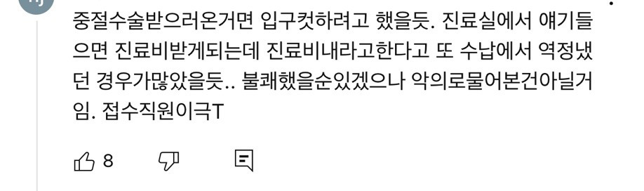 직원은 “환자가 미혼이기도 하고 혹시 중절수술하려고 하는건지? 우리 병원은 미혼 중절수술 안 받는다.”고 안내하려 했다 함