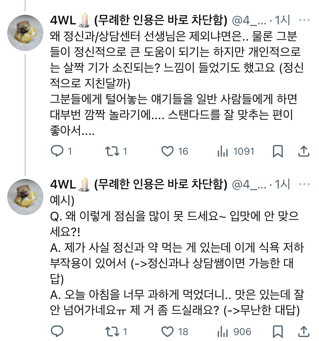 내가 우울의 끝을 달할 때 옆에서 누가 ‘밥 먹자’ 이 한 마디만 해도 감정이 약간 컷될 수 있는데 그 컷되는 말이 없으니까 그냥 우울이 끊임이 없음