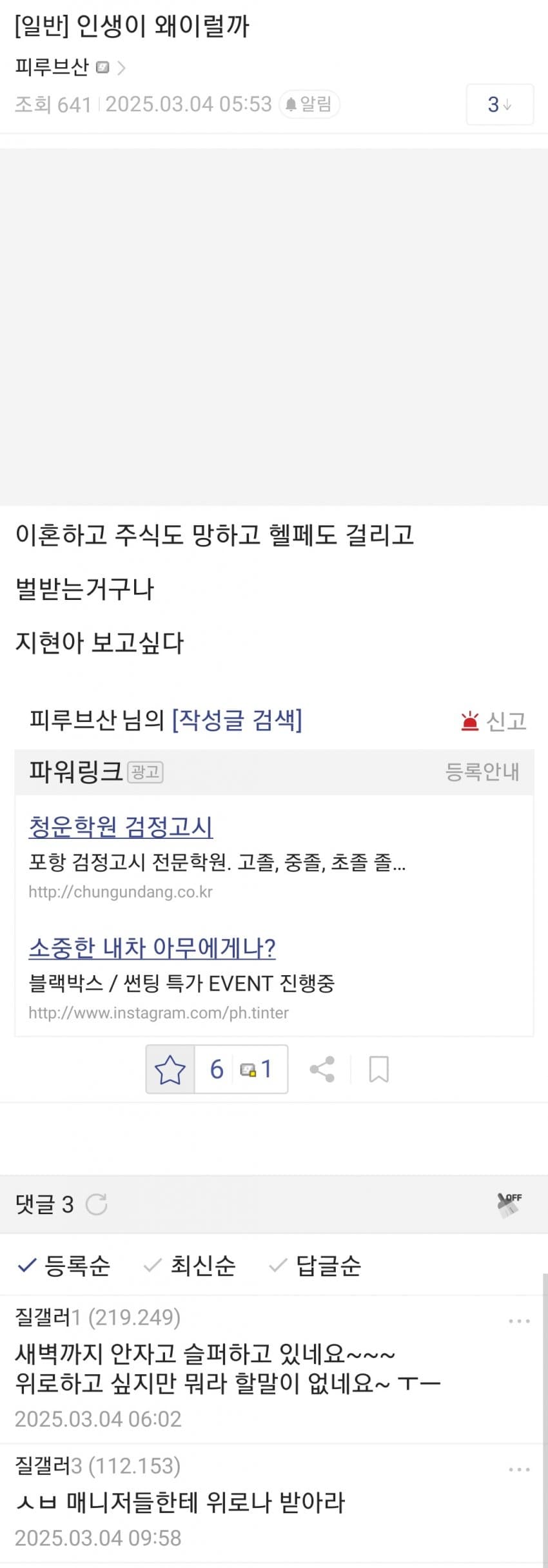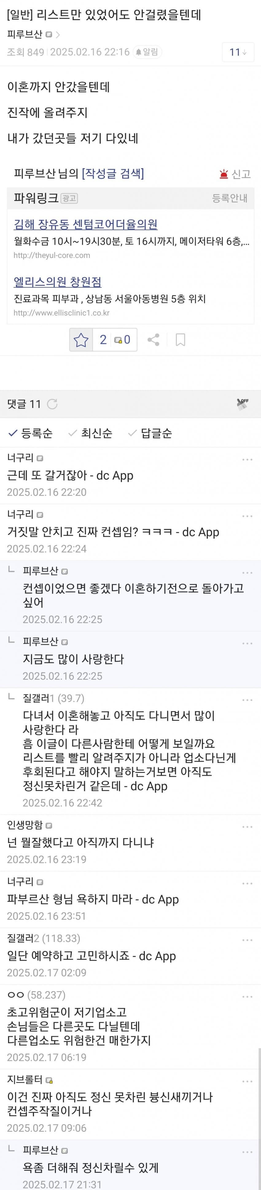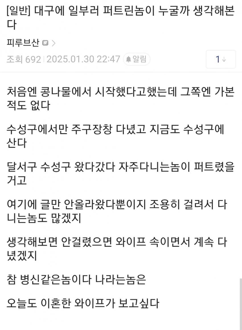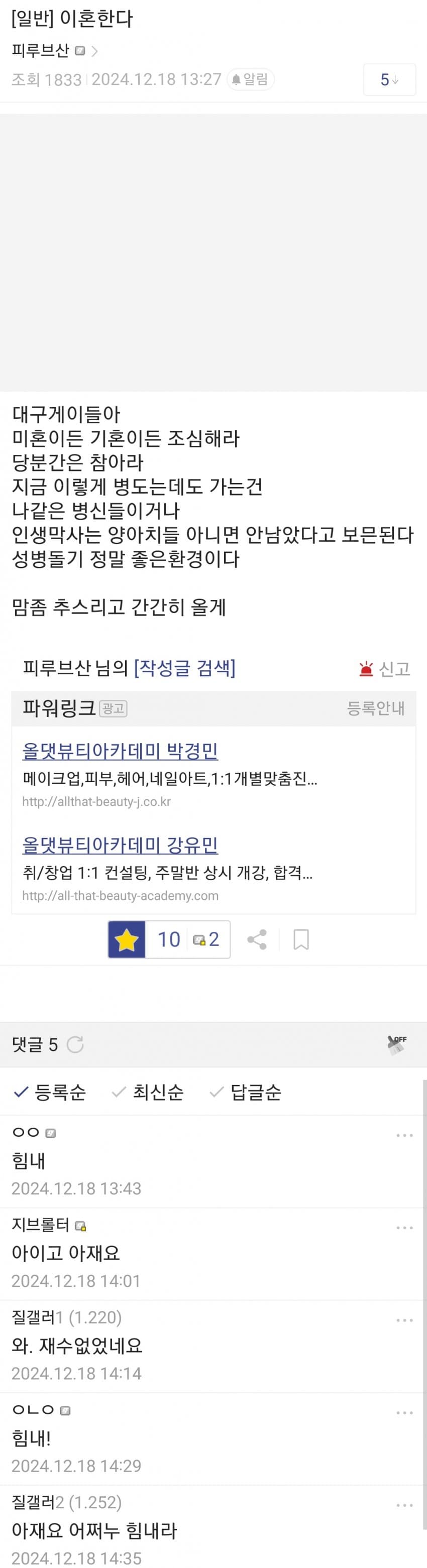 작성자2028 작성시간 25.03.08 대구살고 회사에 이혼소문 다났고 와이프분 이름까지,, 특정되기 딱 좋네