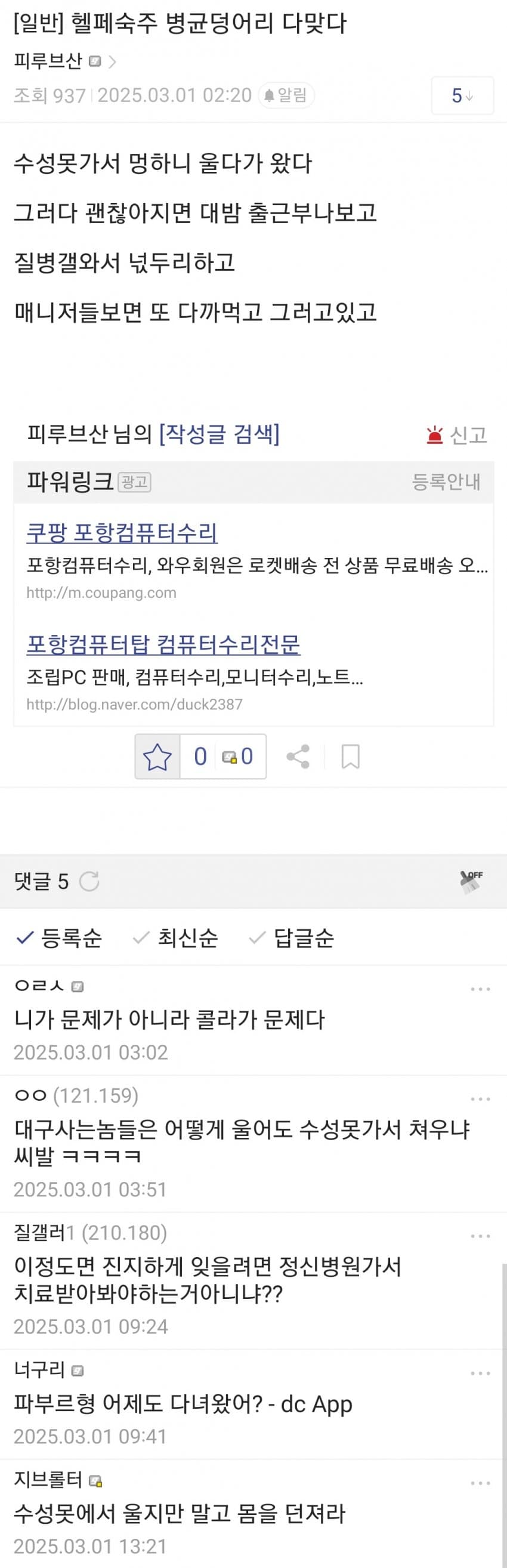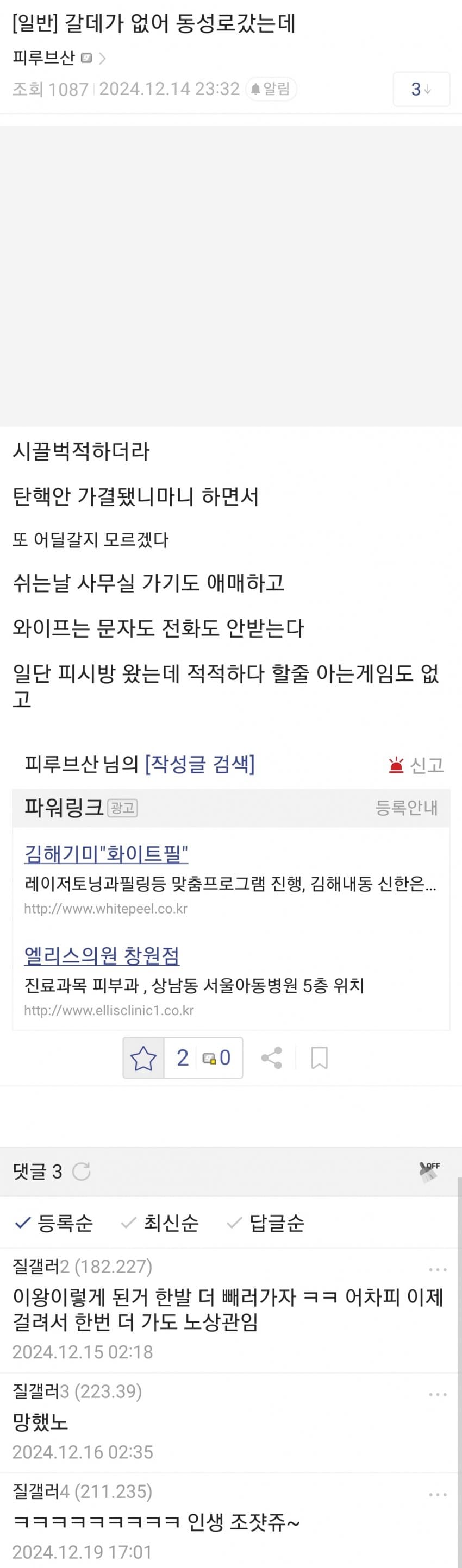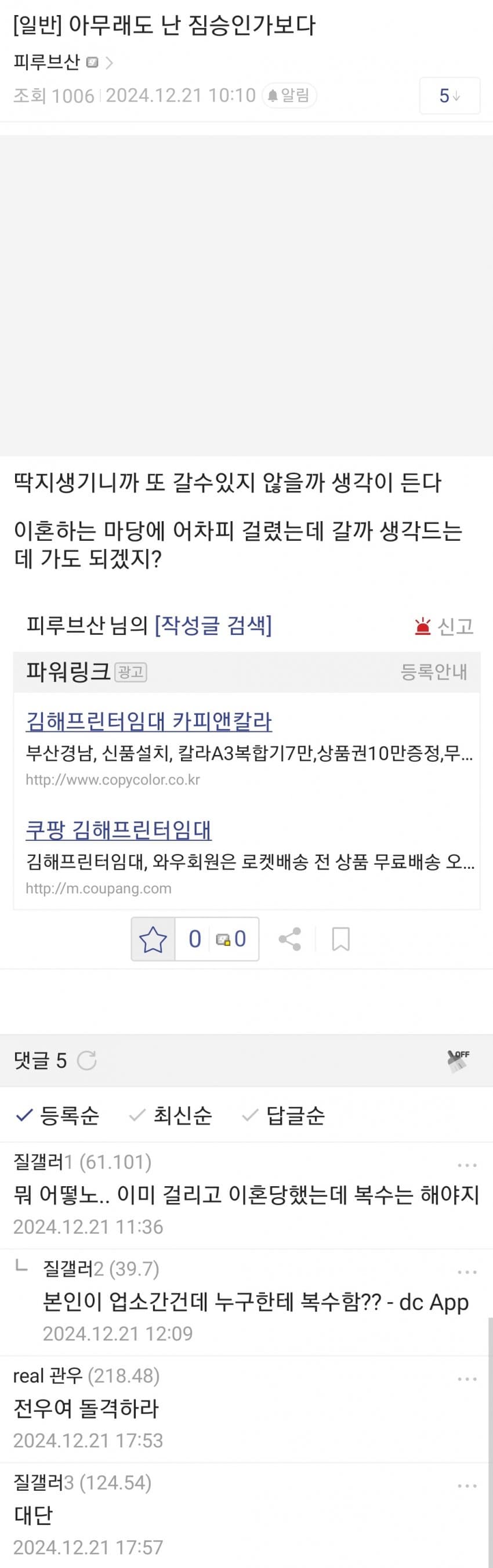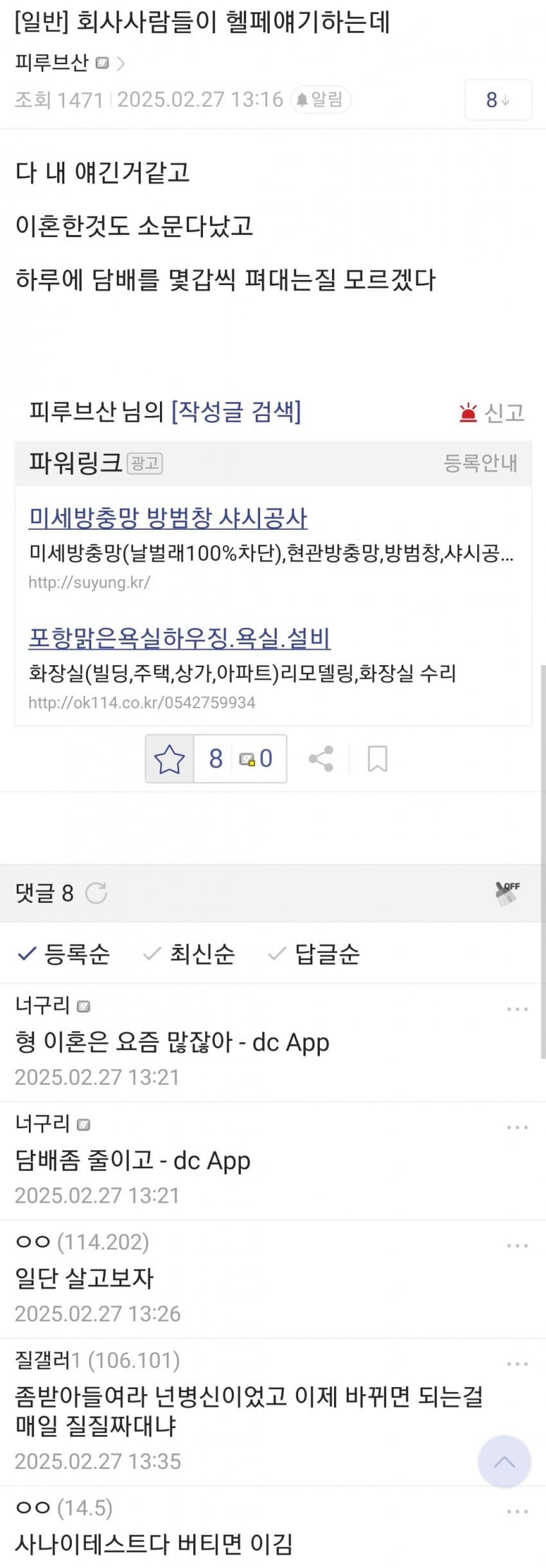 작성자2028 작성시간 25.03.08 대구살고 회사에 이혼소문 다났고 와이프분 이름까지,, 특정되기 딱 좋네