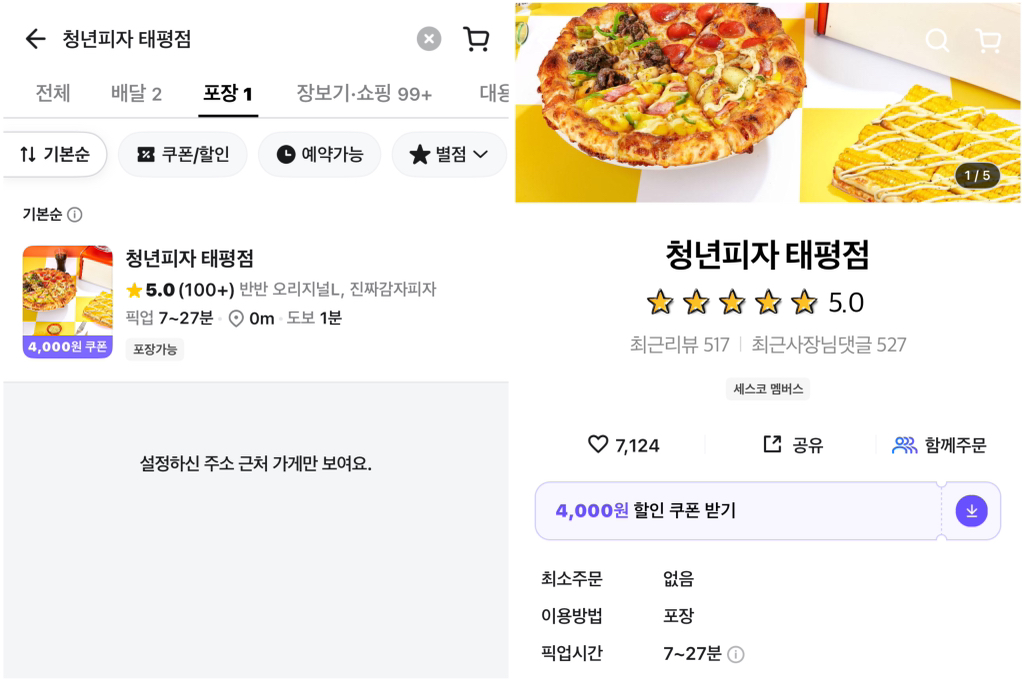 가게배달메뉴에서 포장가능한 매장이면 바로 매장위치 확인하고 가까우면 포장주문하던 나같은 소비자에겐
