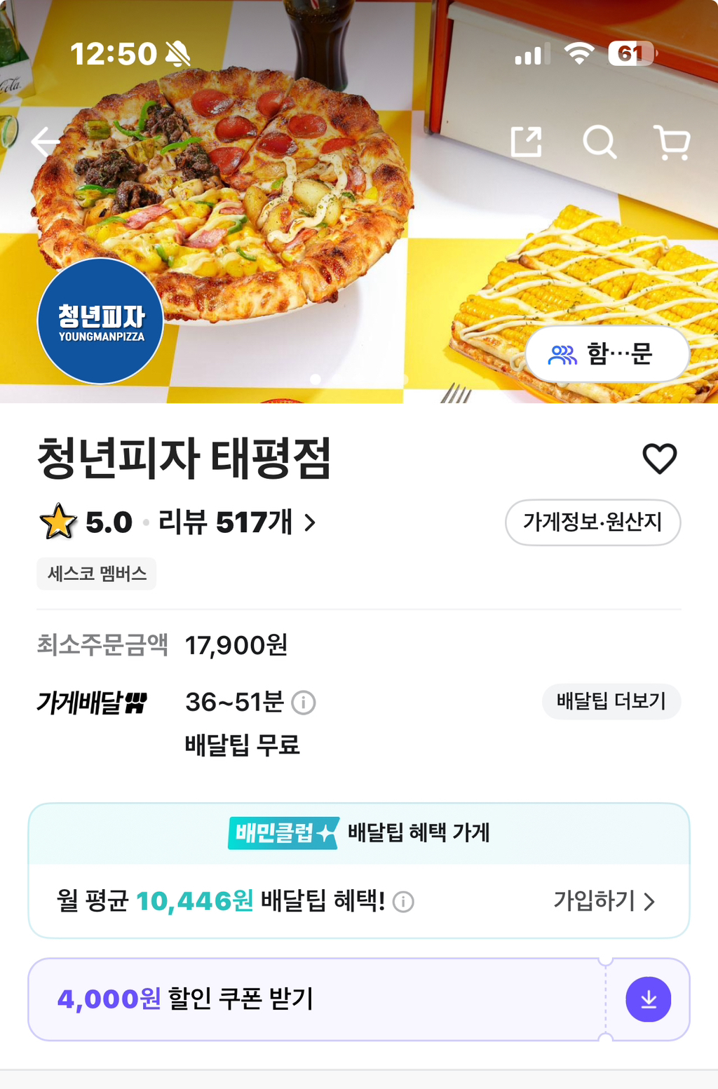근데 포장전용 쿠폰은 다운가능(;)
