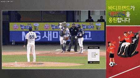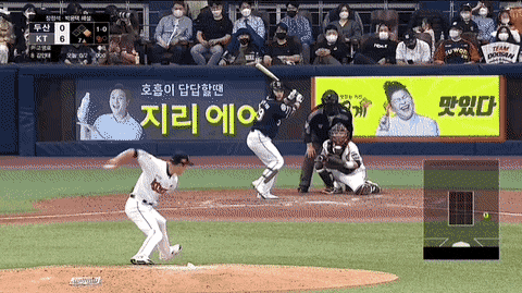 포수가 누워있는 빈틈으로 베이스 터치하기