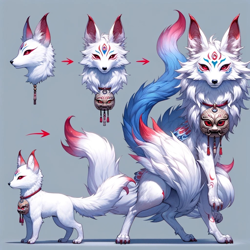 팬던트가 가면이 되고 점점 꼬리가 길어지고 구미호 느낌이 남.