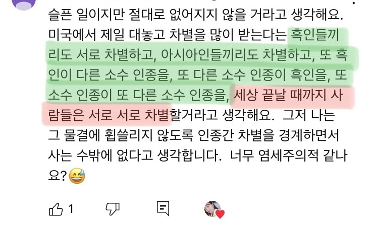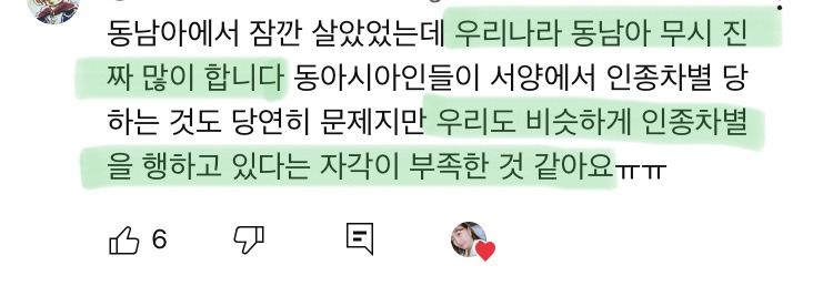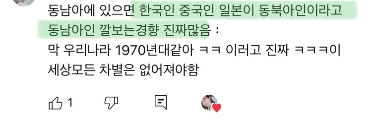 작성자코끼리덕후 작성시간 25.03.09 주류>비주류 차별 어딜가나잇는듯 한국에서는 동남아사람들 오지게 차별하고 또 동남아에서 몇달 살았었는데 거기서는 내가 차별당함