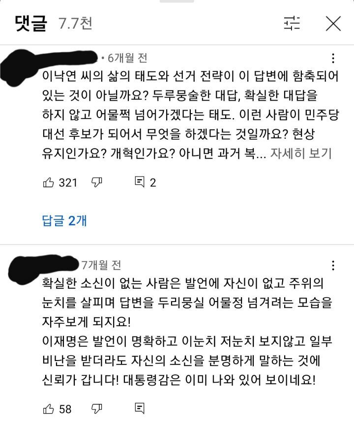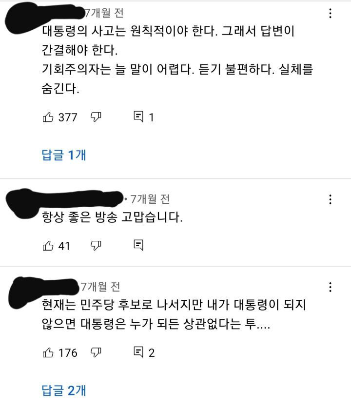 일부러 대선 몇개월 전 댓글만 가져왔어
