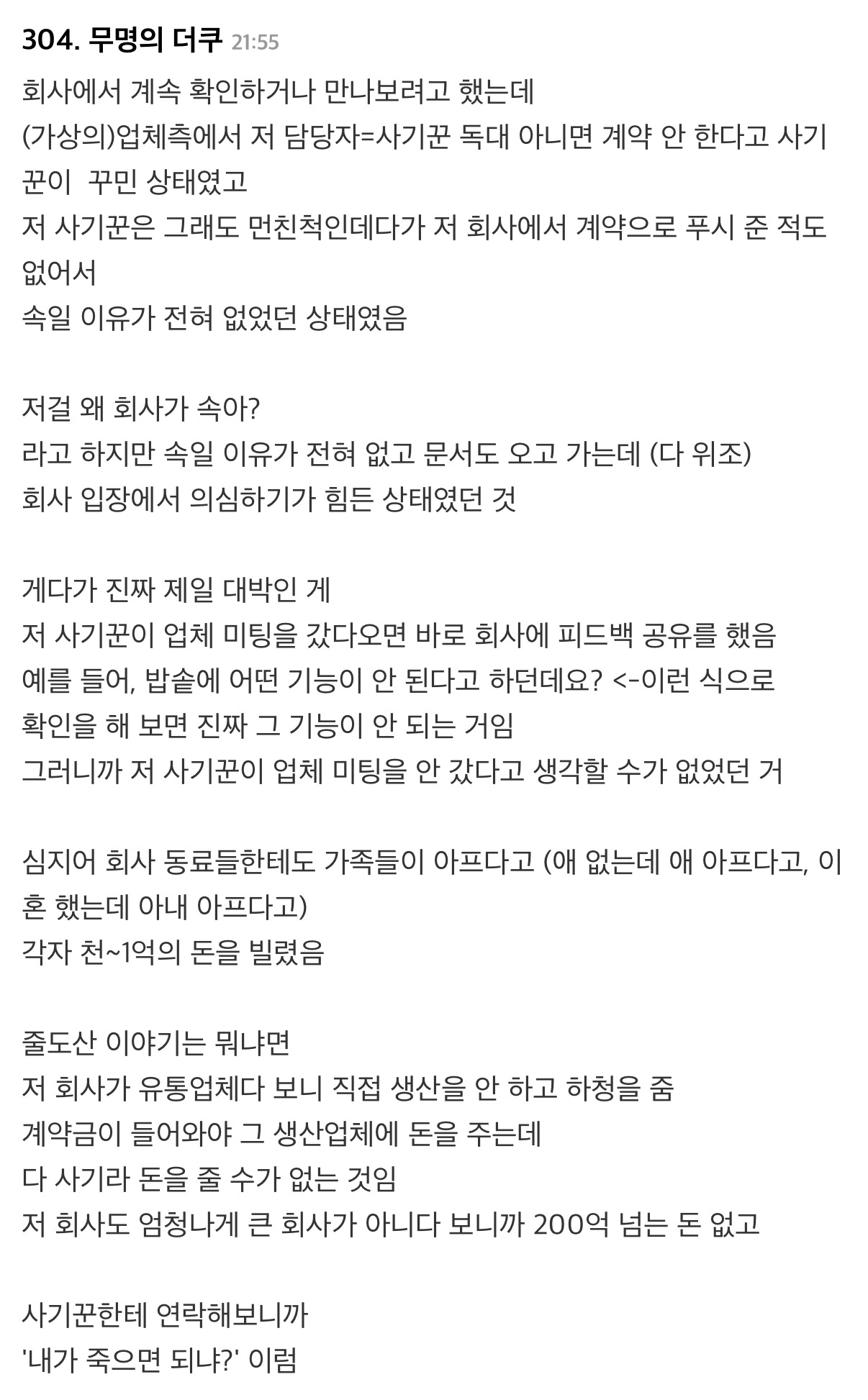 작성자조선백자 작성시간 25.03.10 몇백억원 벌어놓고 죽든지;;; 너 때문에 다른사람들이 잘못되게 생겼다