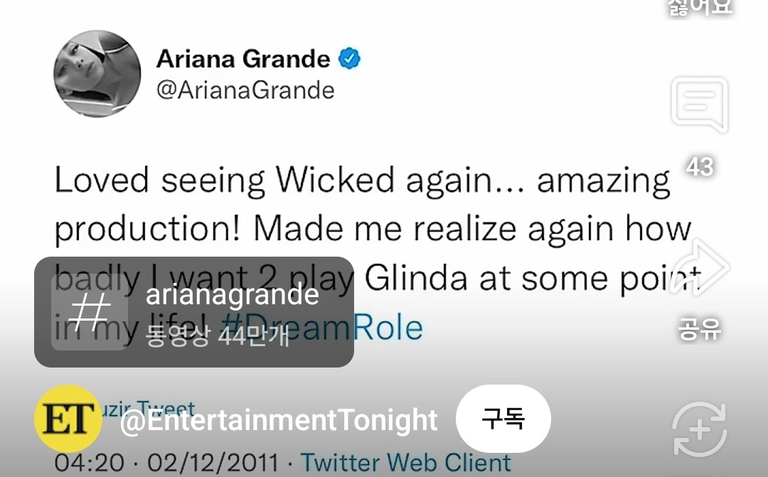 언젠가 글린다를 연기해보고 싶다고 글을 올린적이 있음