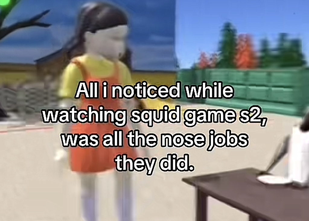 해석: 오징어 게임 시즌 2 보는데 코 수술한게 너무 티 나서 그것만 보임