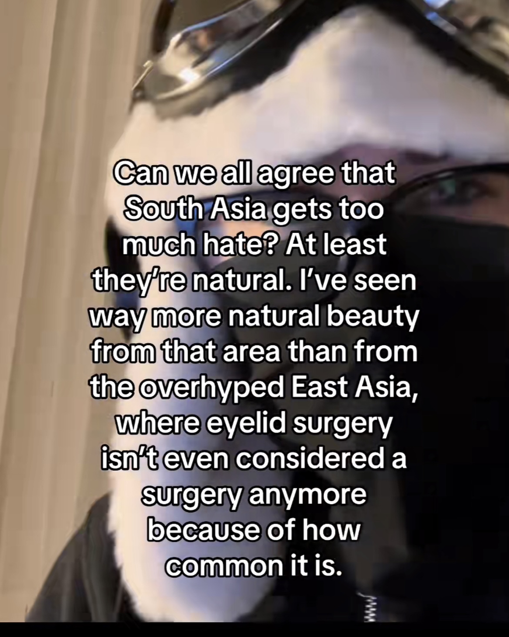 해석: 근데 진짜 남아시아가 너무 과하게 까이는거 ㅇㅈ? 거긴 적어도 성형은 안 했잖음. 난 그 지역에서 성형이 너무 많이 해서 쌍수가 수술로도 안 쳐지는 과대평가된 동아시아인들보다 자연미인을 훨씬 많이 봄.