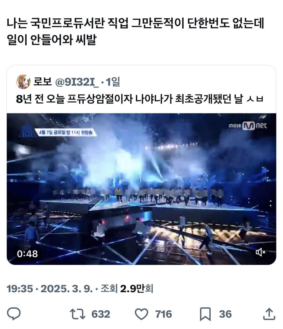 8년 전 오늘 프듀상암절이자 나야나가 최초공개됐던 날 ㅅㅂ pic.twitter.com/MQ2T6lljLN