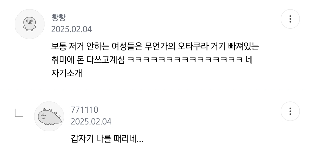 작성자네넵네넨 작성시간 25.03.11 다 없음 돈 없어 있어도 저것들엔 안 씀