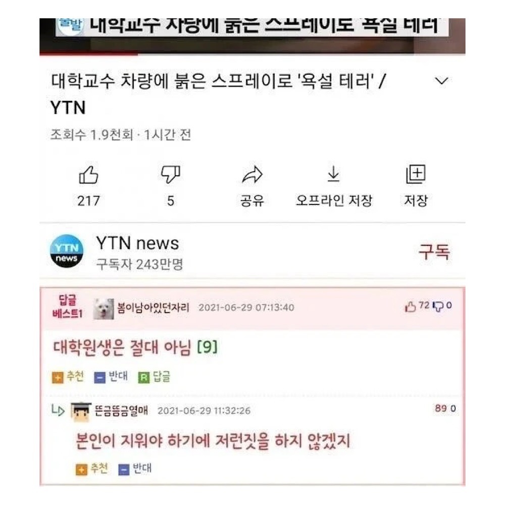 이제 대학원생이 해야 하는 일: 범인 찾기(신고) + 지우기 + 비용청구 +a로 지우는 데 시간 걸리면 대체 차량 렌트 / 경우에 따라 감정 노동