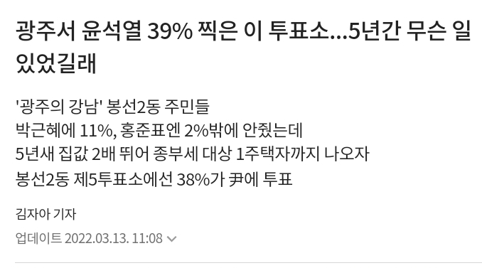 작성자곰도리히진 작성시간 25.03.10 근데 봉선2동이 찐 광주 사람 아니라 한전으로 빠저나가기 쉬운 동네라 타지사람도 많이 살긴함...그래도 좀 부끄럽네 어휴