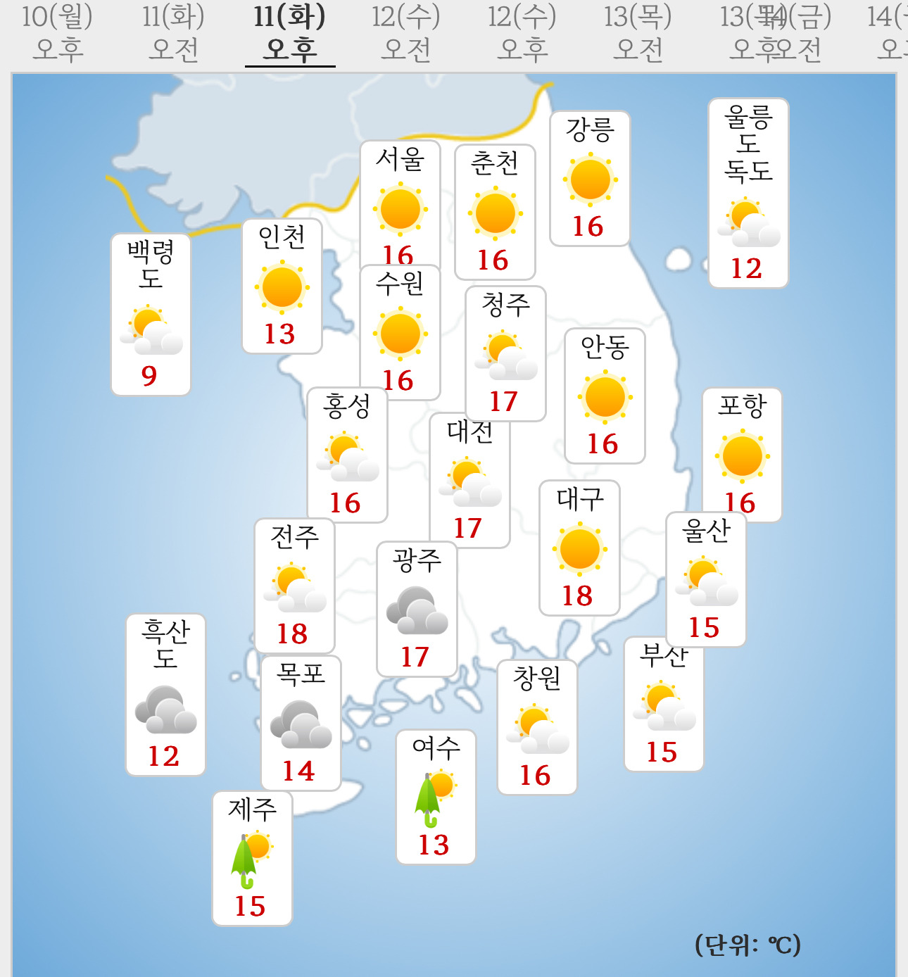 [흥미돋]내일 날씨 예보 작성자나프탈렌향|작성시간25.03.10|조회수24,003 목록 댓글 13 글자크기 작게가 글자크기 크게가 출처: 여성시대 나프탈렌향 다음검색 현재 게시글 추가 기능 열기 북마크 공유하기 신고 센터로 신고 댓글 댓글 13 댓글쓰기 답글쓰기 댓글 리스트 작성자괴물삼총사 | 작성시간 25.03.10 일교차 뭔 일이여.. 작성자퍼피파피 | 작성시간 25.03.10 바막 입어야지 작성자다크 초코 | 작성시간 25.03.10 작성자송흥밍 | 작성시간 25.03.10 에바야 조졌다 반팔사야해 작성자개똥이 똥개 | 작성시간 25.03.10 미세먼지 너무 안좋다고 ㅠ 답답해 디지겠고 댕댕이 산책 안한다고 말썽 부린다고 ㅠ 더울꺼면 덥기만 해야지 댓글 전체보기
