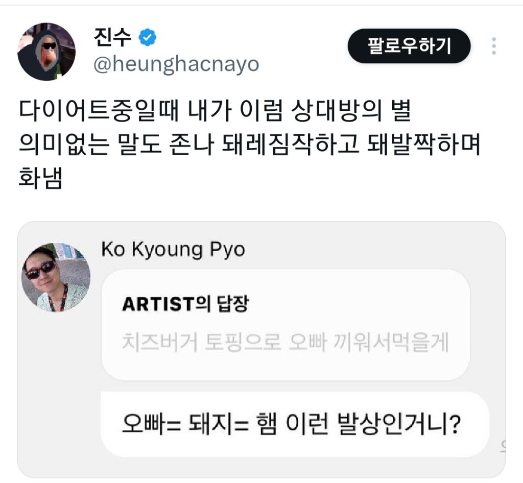[스크랩] [배꼽의행방]고경표와 진수의 콜라보.x 작성자열빙어|작성시간25.03.10|조회수13,806 목록 댓글 7 글자크기 작게가 글자크기 크게가 출처: https://x.com/heunghacnayo/status/1866132138669773114?t=t-ZtH2Txu0pzwP8ReYjIVQ&s=19https://x.com/heunghacnayo/status/1866132138669773114?t=t-ZtH2Txu0pzwP8ReYjIVQ&s=19개웃겨 다음검색 스크랩 원문 : *여성시대* 차분한 20대들의 알흠다운 공간 현재 게시글 추가 기능 열기 북마크 공유하기 신고 센터로 신고 댓글 댓글 7 댓글쓰기 답글쓰기 댓글 리스트 작성자놀러가야징 | 작성시간 25.03.10 ㅋㅋㅋㅋㅋㅋㅋㅋㅋㅋㅋㅋㅋㅋㅋㅋ 작성자집에보내죠요제발요 | 작성시간 25.03.10 돼레짐작 ㅋㅋㅋㅋㅋㅋㅋㅋ 작성자여무세요 | 작성시간 25.03.10 돼레짐작ㅋㅋㅋㅋㅋㅋㅋㅋㅋ고경표맘 이해 감 작성자하이아엉 | 작성시간 25.03.10 진수 슈스다 작성자⊙▽⊙ | 작성시간 25.03.10 돼발짝ㅋㅋㅋㅋㅋㅋㅋㅋ 댓글 전체보기