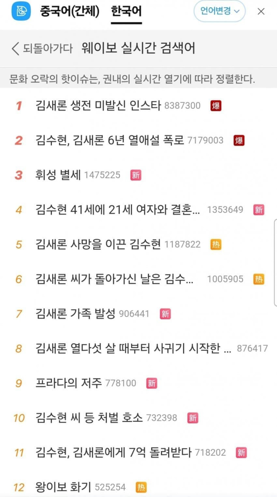 작성자헤이치 작성시간 25.03.14 한국카테고리인거야? 아님 그냥 일반 중국 실검인데 오늘 한국이 핫한거야? 중국 이야기는 순위에 없어서ㅜ
