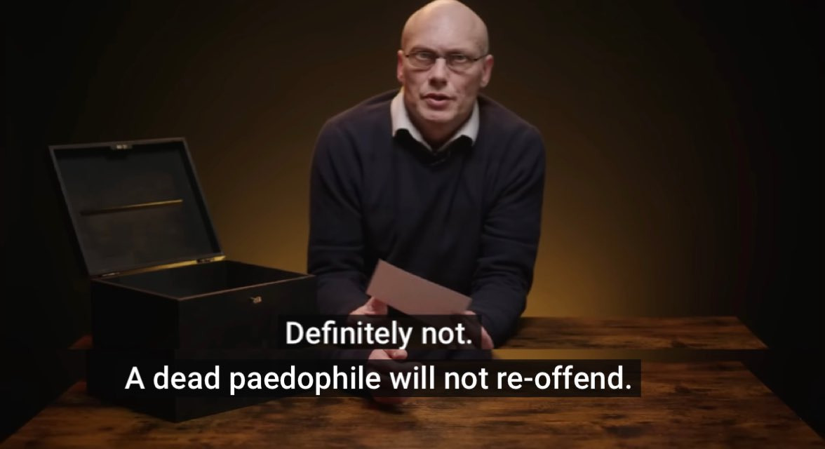 A. 전혀요. 죽은 소아성애자는 재범하지 않으니까요.