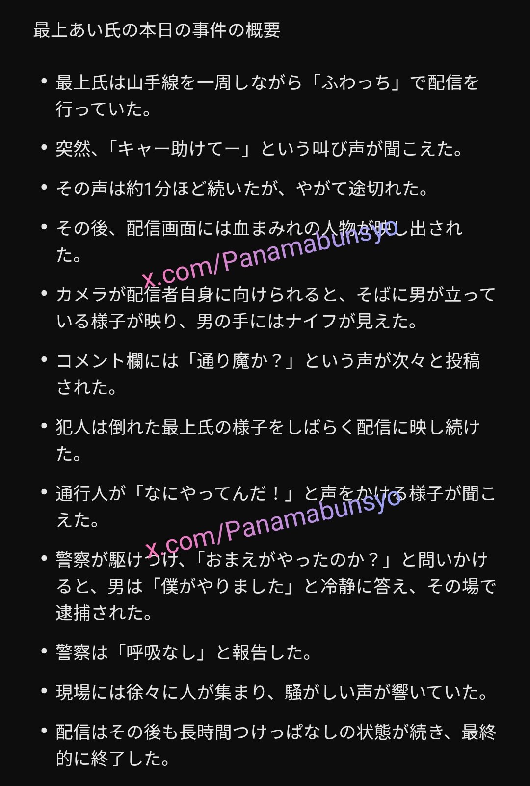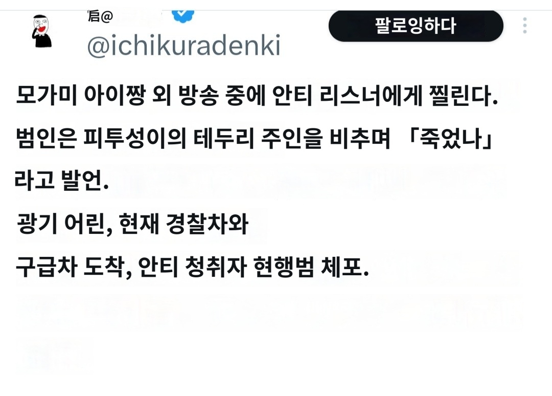 범인은 쓰러진 모가미 씨의 모습을 한동안 방송에 계속 비췄다.