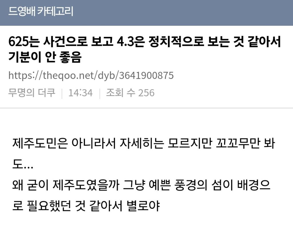 답댓글 작성자파곱창 작성시간 25.03.13 드라마 배우는데 시대극이 한 시대를 나타내는거라 꼭 4.3 직접 언급 없어도 간접적으로라도 언급이 되가지고 아예 패싱한것도 아니고