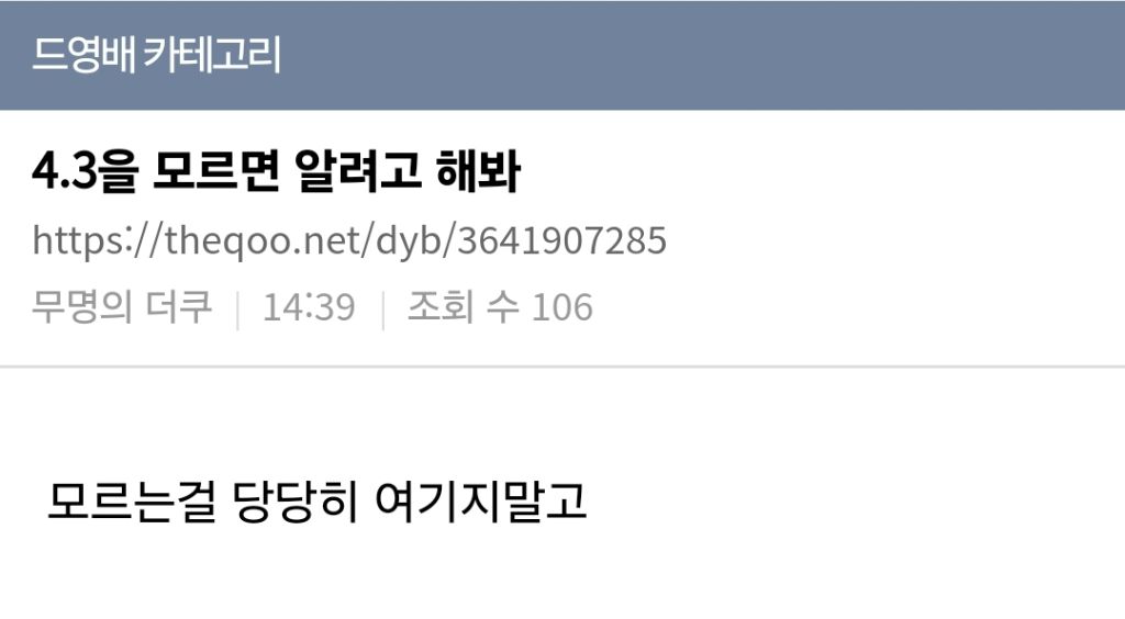 작성자삼십분 작성시간 25.03.12 진짜 어거지 오져 제주도 놀러가면 매번 4.3.기념관 들르기나 하고 저ㅈㄹ하는거지?