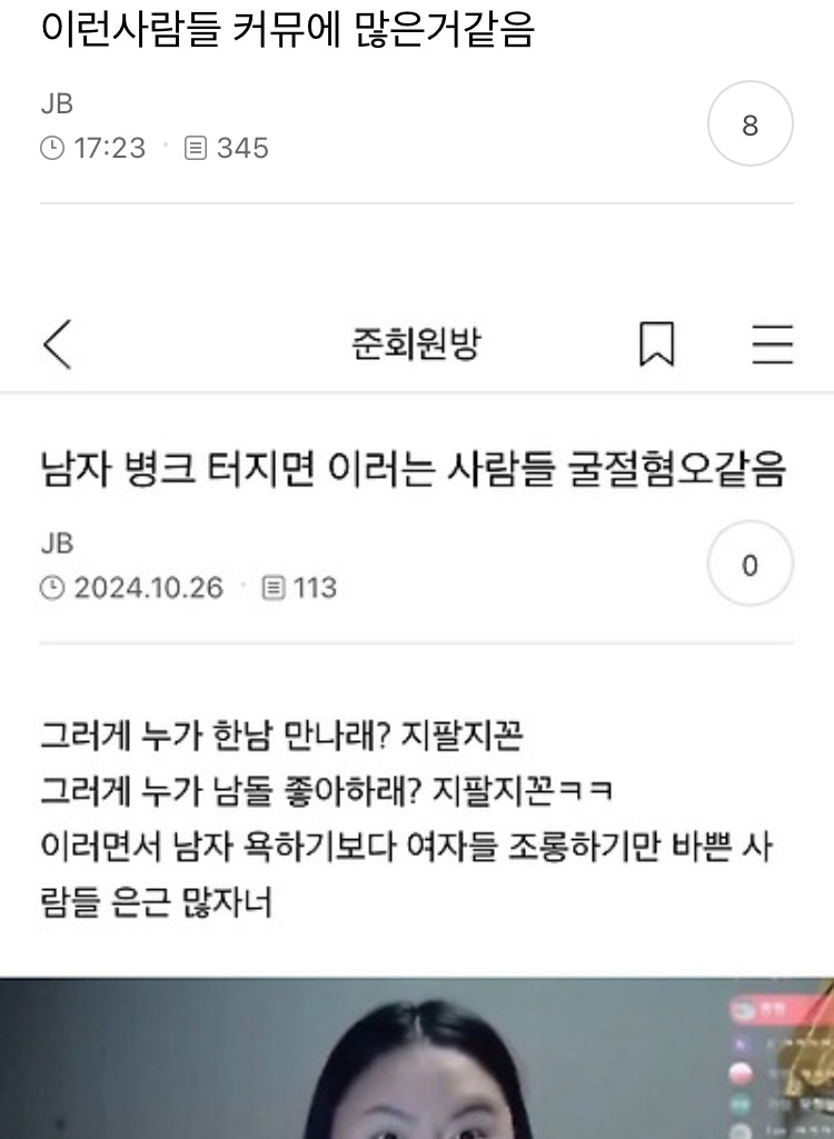 작성자알밤막걸리먹고싶다 작성시간 25.03.11 여자도 여자를 싫어하더라..ㅋ