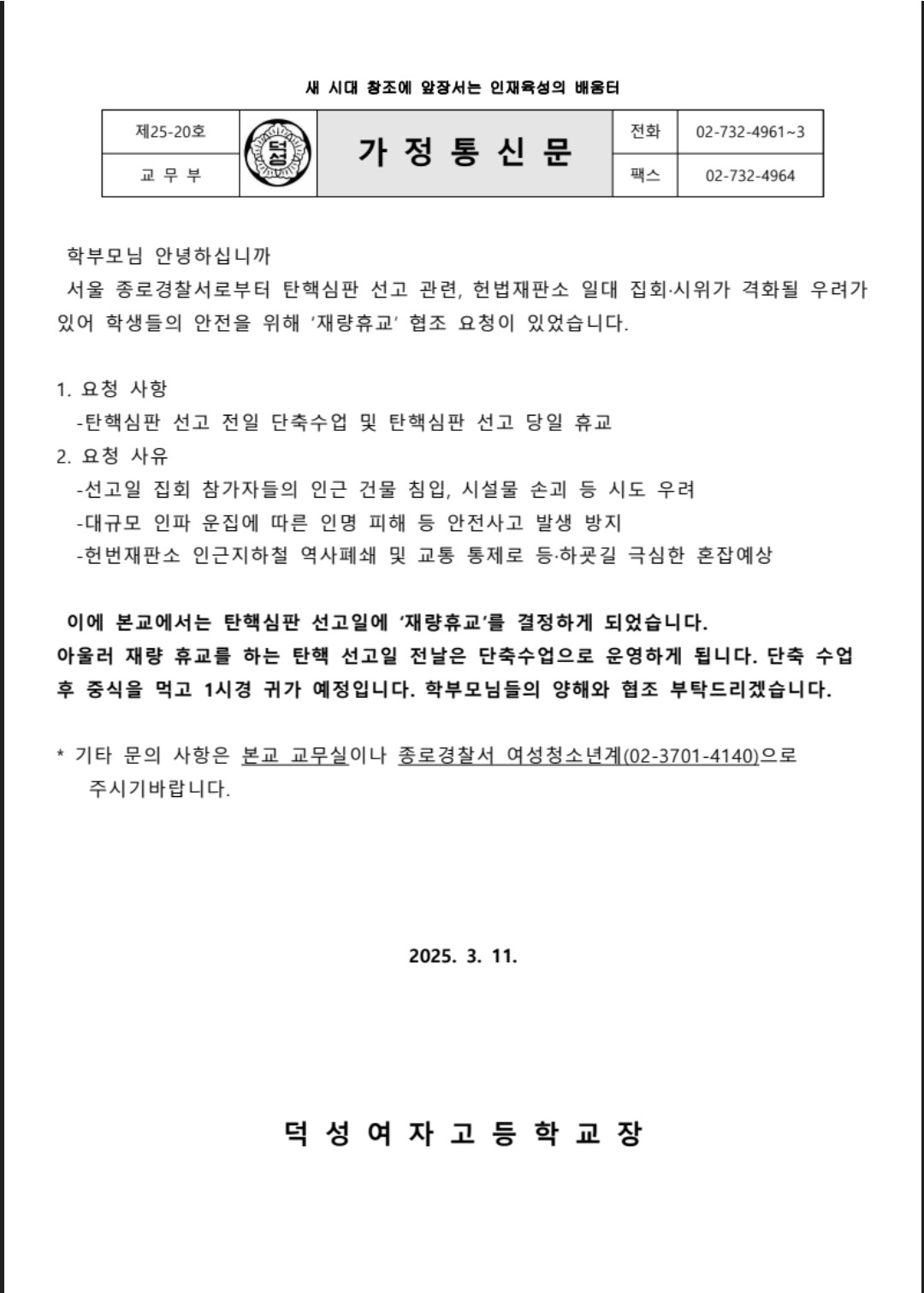 [흥미돋]오늘 헌법재판소 근처 학교에서 올라온 가정통신문 작성자야구좀잘해봐라|작성시간25.03.11|조회수43,215 목록 댓글 167 글자크기 작게가 글자크기 크게가 출처: https://theqoo.net/square/3643596789 다음검색 현재 게시글 추가 기능 열기 북마크 공유하기 신고 센터로 신고 댓글 댓글 167 댓글쓰기 답글쓰기 댓글 리스트 작성자성 준 수 | 작성시간 25.03.11 아이고 애들이 뭔죄냐.. 휴교한 보람이 있도록 하바바 작성자R=VD 원하는것다이루기 | 작성시간 25.03.11 하바바 작성자고양이 | 작성시간 25.03.11 내일????? 내일???? 작성자마크 러팔로 | 작성시간 25.03.11 아 제발제발 ㅠㅠ 작성자삼성디스플레이 | 작성시간 25.03.12 하바바!!! 댓글 전체보기