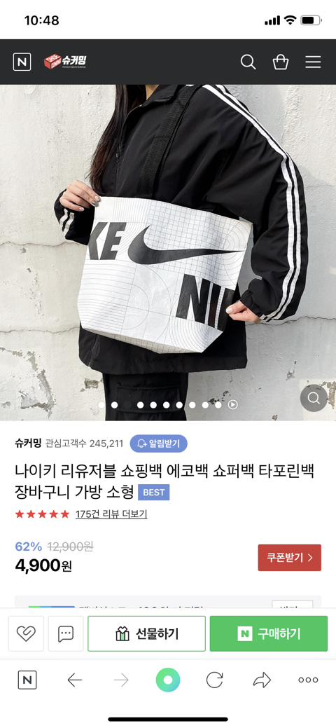 방수되는 타포린소재에 끈도 튼튼해서 비오는날에도 쌉가넝한~ 나이키 강남점에서 상품구매없이 샀는데 지금도 되는지는 모르겠네ㅠㅠ