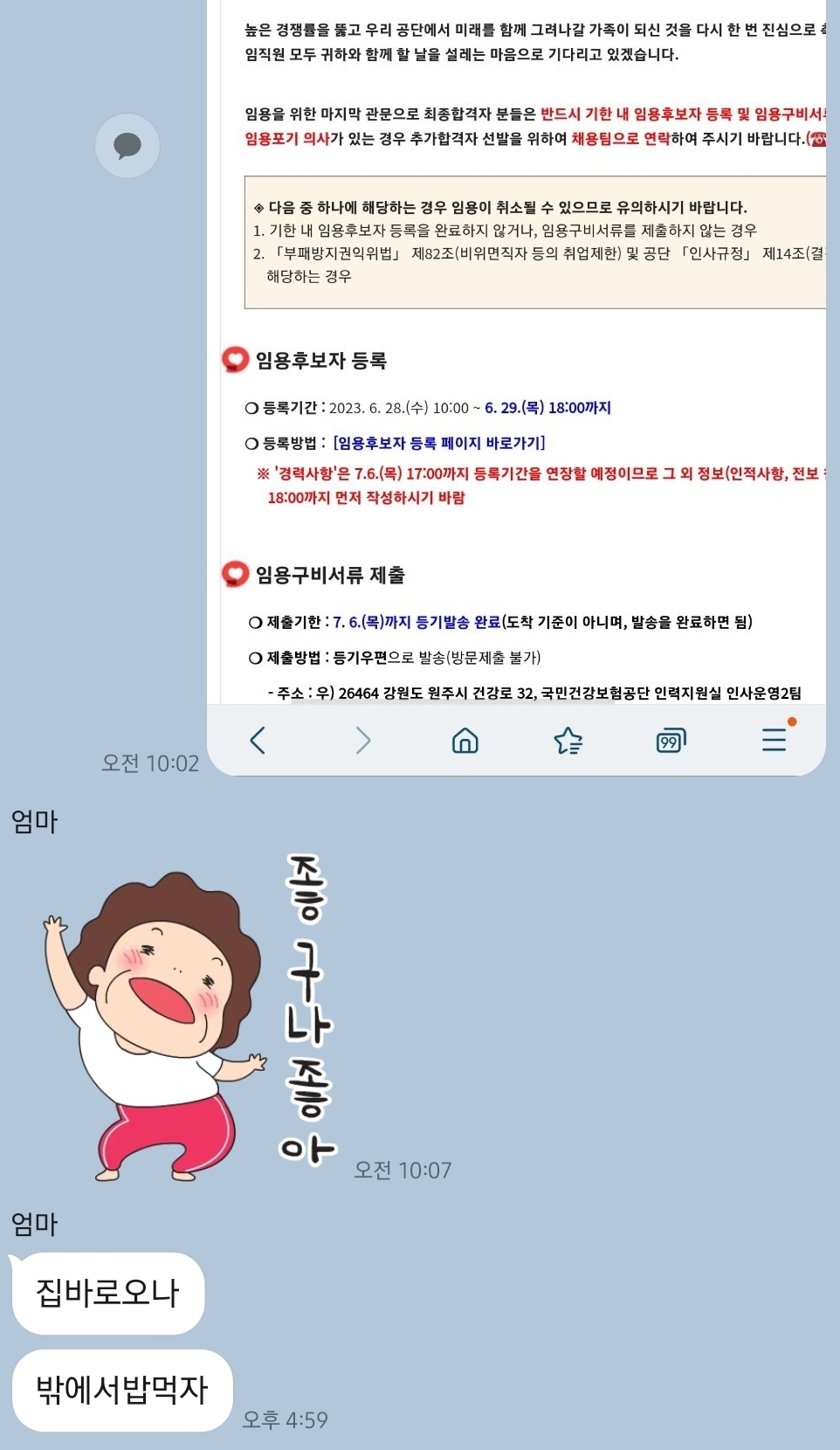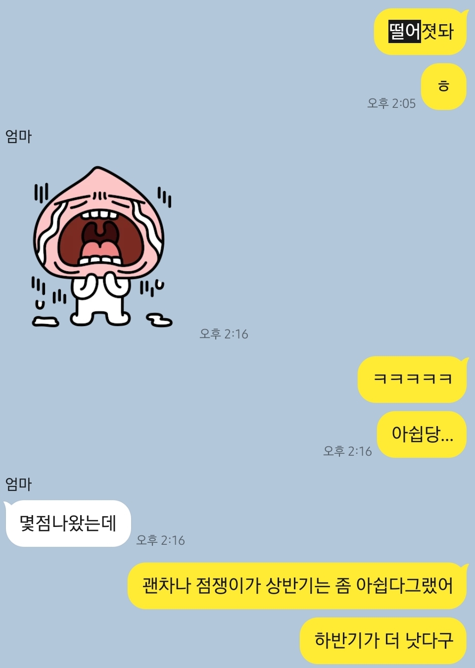 울고있을까봐 걱정하는 엄마ㅋㅋ