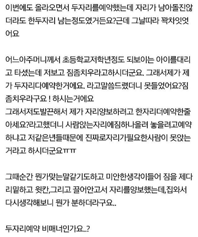 작성자알파캇소 작성시간 25.03.12 이건 좀 아니지.. 급한 사람들도있고..너무 이기적이야 돈만 내면 다인가.."대중"교통 이잖아..