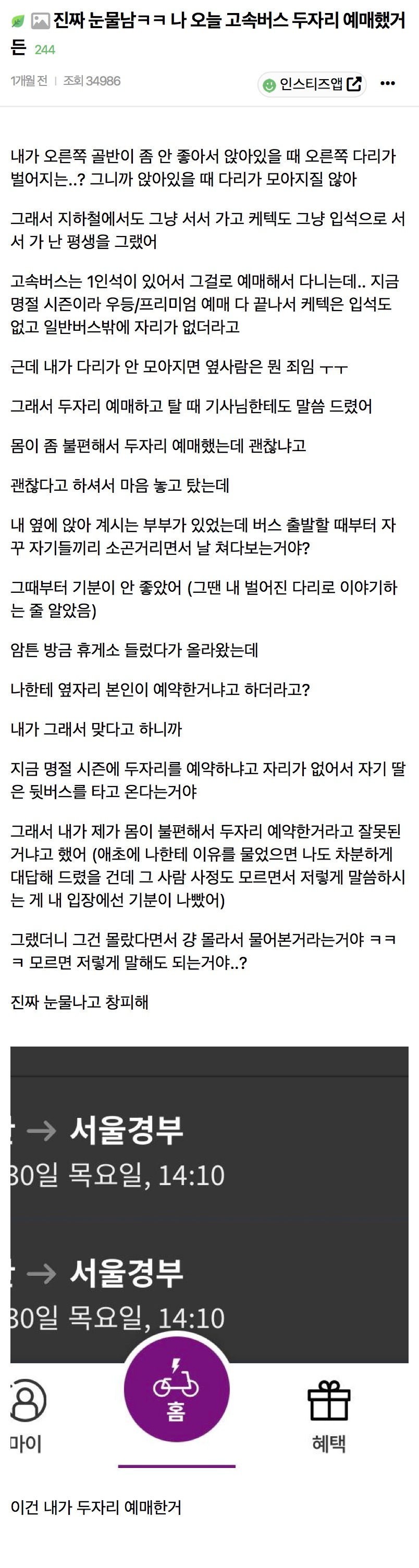 작성자꾸꾸깍깤 작성시간 25.03.12 이해는간다.. 어쨌거나 저런상황이면 같이 타고 욕하더라고 사람들..차라리 몸이라도 편하게 가고 욕먹는거낫지뭐