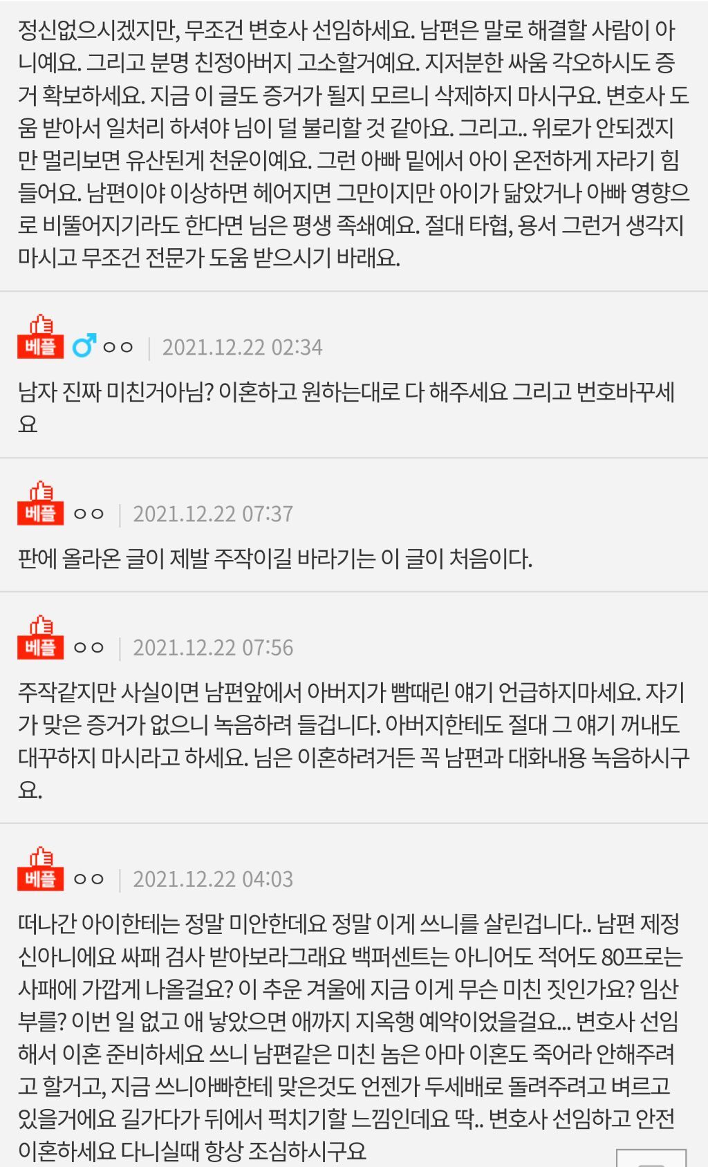 그러니까 이혼하라 하시면 저 때리신 거 고소할 겁니다.”