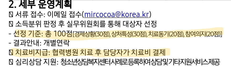 치료비는 협력벙원 치료 후 담당자가!!! 결제하는것