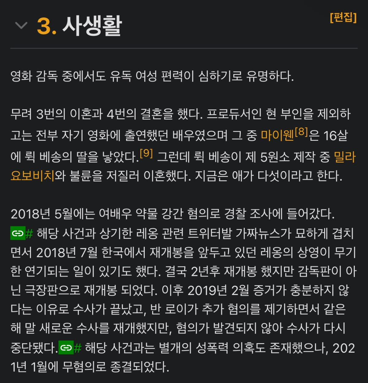 그리고 제 5원소 밀라요보비치와 불륜으로 이혼.