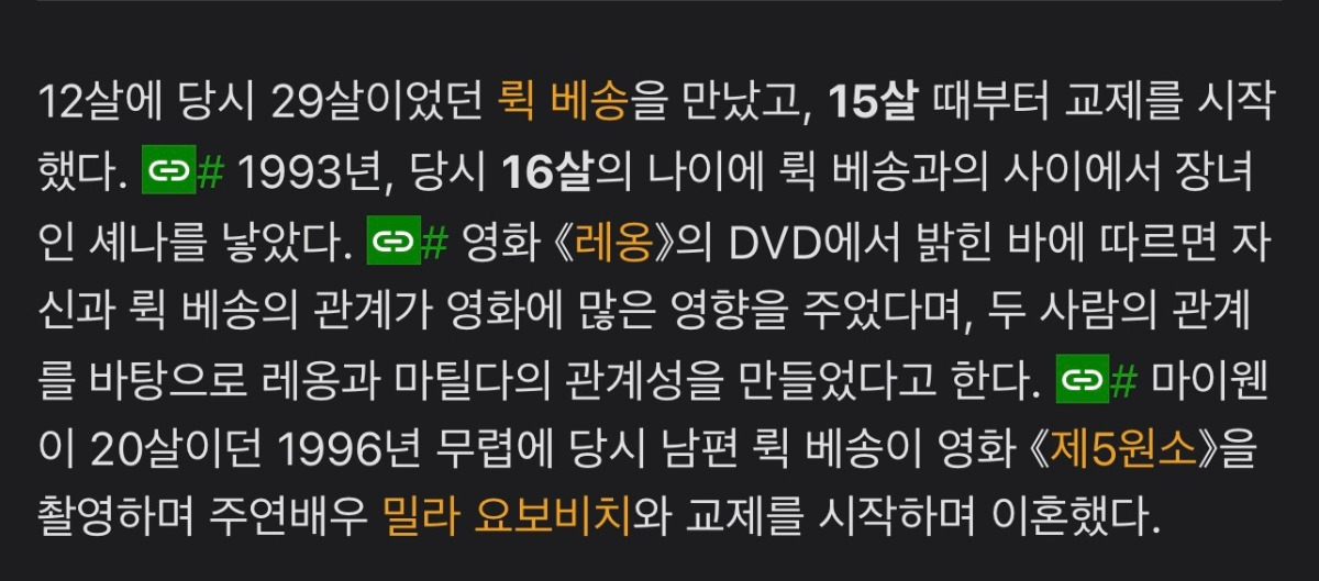 마이웬은 16살에 뤽베송의 아이를 출산(…)