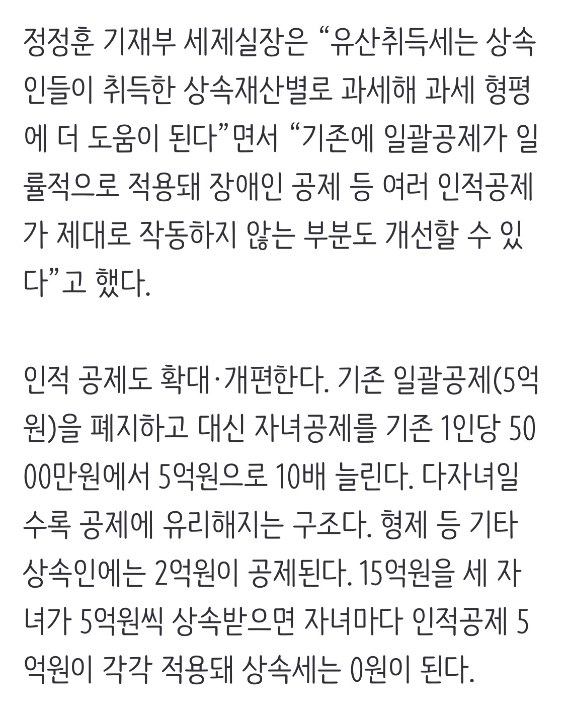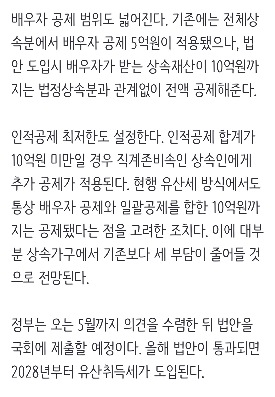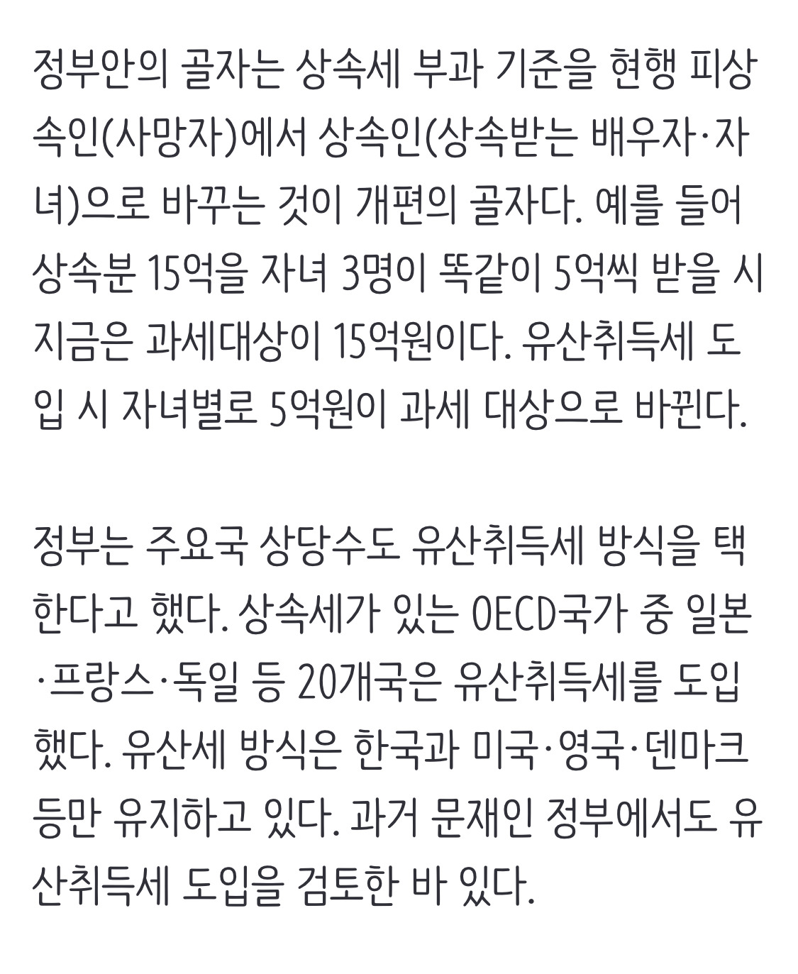 [여시뉴스데스크][속보]상속받은 만큼만 세금 낸다···정부, ‘쪼개기 감세’ 유산취득세 도입 작성자마라톤 준비생|작성시간25.03.12|조회수1,201 목록 댓글 1 글자크기 작게가 글자크기 크게가 출처: 여성시대 마라톤 준비생https://n.news.naver.com/article/032/0003356163?cds=news_edit[속보]상속받은 만큼만 세금 낸다···정부, 상속세 ‘유산취득세 방식’으로 개편정부가 전체 상속분이 아닌 각 개인이 상속받은 재산에만 세금을 부과하는 유산취득세 방식을 도입하기로 했다. 현 제도가 사망자의 전체 유산을 기준으로 과세하기 때문에 과세 형평성이 어긋n.news.naver.com 다음검색 현재 게시글 추가 기능 열기 북마크 공유하기 신고 센터로 신고 댓글 댓글 1 댓글쓰기 답글쓰기 댓글 리스트 작성자마루쫑쫑마루 | 작성시간 25.03.12 아니 ㅋㅋㅋ 정작 서민들이 많이 내는 증여세 개편은 하지도 않고 상속세 개편만 하는게 너무 속보이는데..? 댓글 전체보기