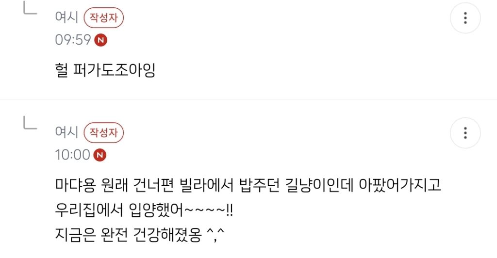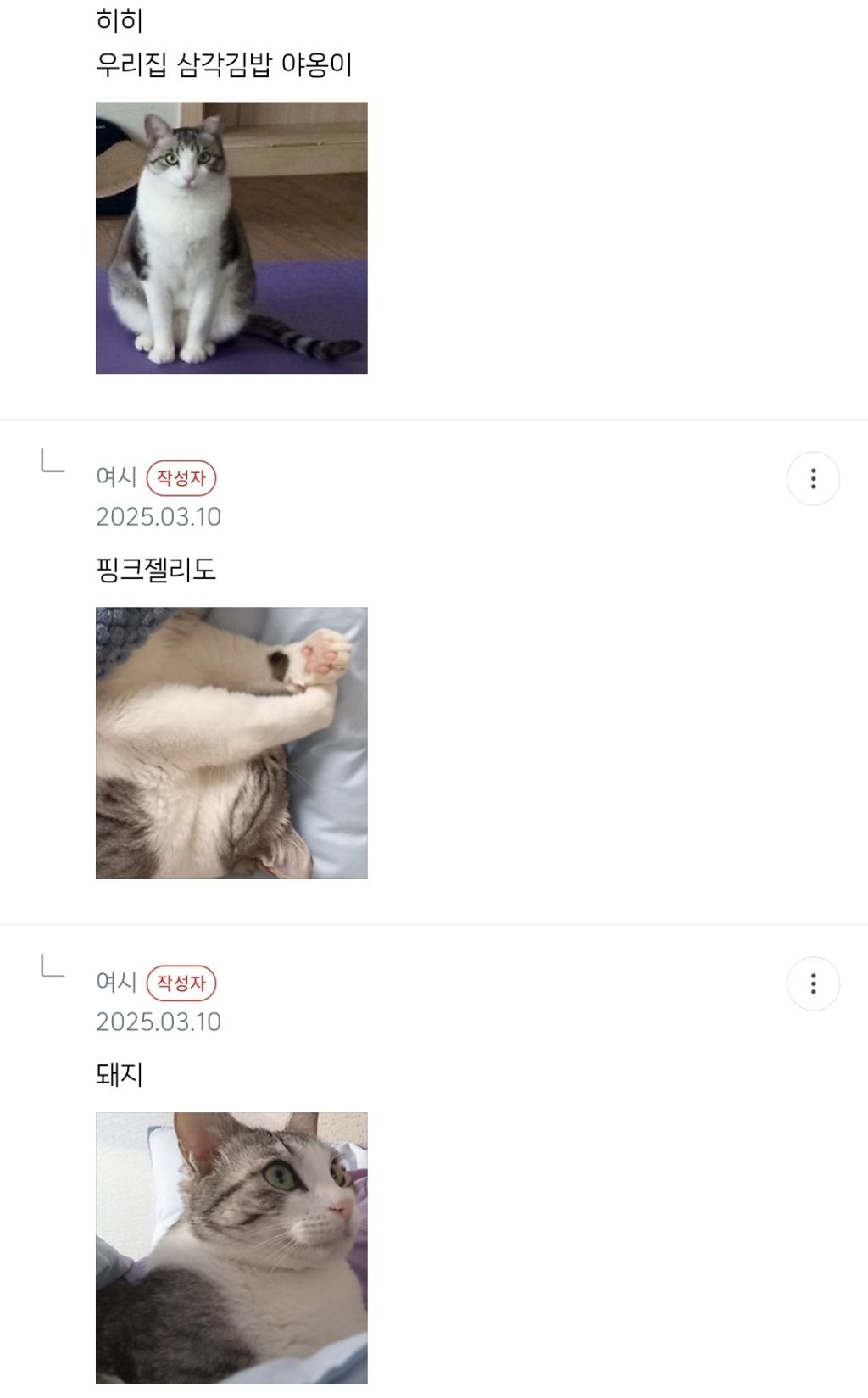 [힐링][고양이] 엄마가 요즘 바느질에 빠졌거든 작성자캣러버|작성시간25.03.12|조회수20,173 목록 댓글 19 글자크기 작게가 글자크기 크게가 출처:여성시대 캣러버매쫑방 글 https://m.cafe.daum.net/subdued20club/UWV0/1717310+)냥이 건강해🩷 행복해🩷문제시 냥냥 ㅠ 다음검색 현재 게시글 추가 기능 열기 북마크 공유하기 신고 센터로 신고 댓글 댓글 19 댓글쓰기 답글쓰기 댓글 리스트 작성자고양이고양이사랑해 | 작성시간 25.03.12 너무 귀여워ㅜㅜㅜ 작성자바바방바바바바 | 작성시간 25.03.12 귀여워 ㅜㅜ 작성자고양이고양이고양이 | 작성시간 25.03.12 진짜졸귀 작성자2025행복 | 작성시간 25.03.12 악 너무 귀엽쟈나ㅠㅠ 작성자골목길에서도 방향지시등 켜띿오 | 작성시간 25.03.12 냥냥 ㅠㅠ 댓글 전체보기