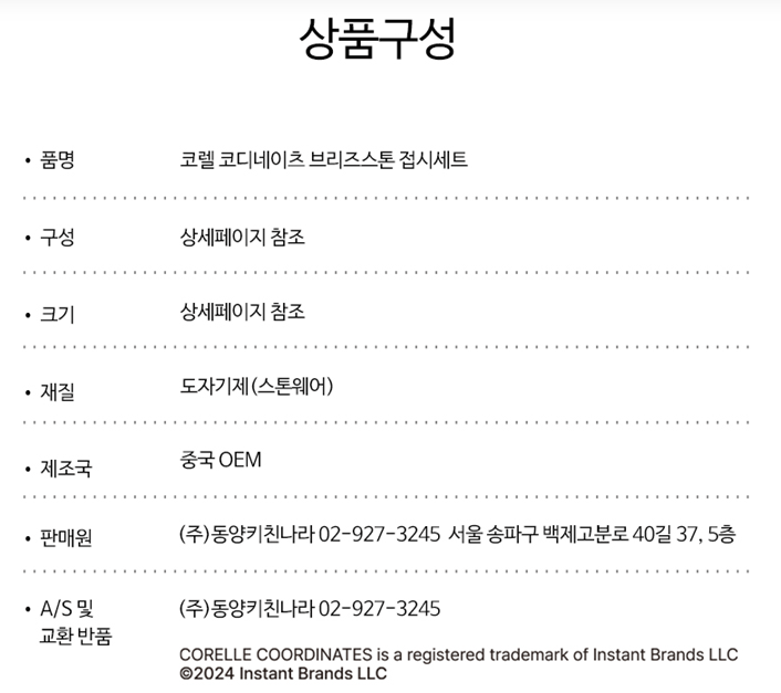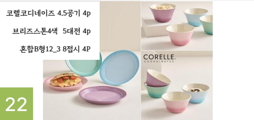 22번 제품은 (주)동양키친나라 회사에서 판매하는 CORELLE 시리즈