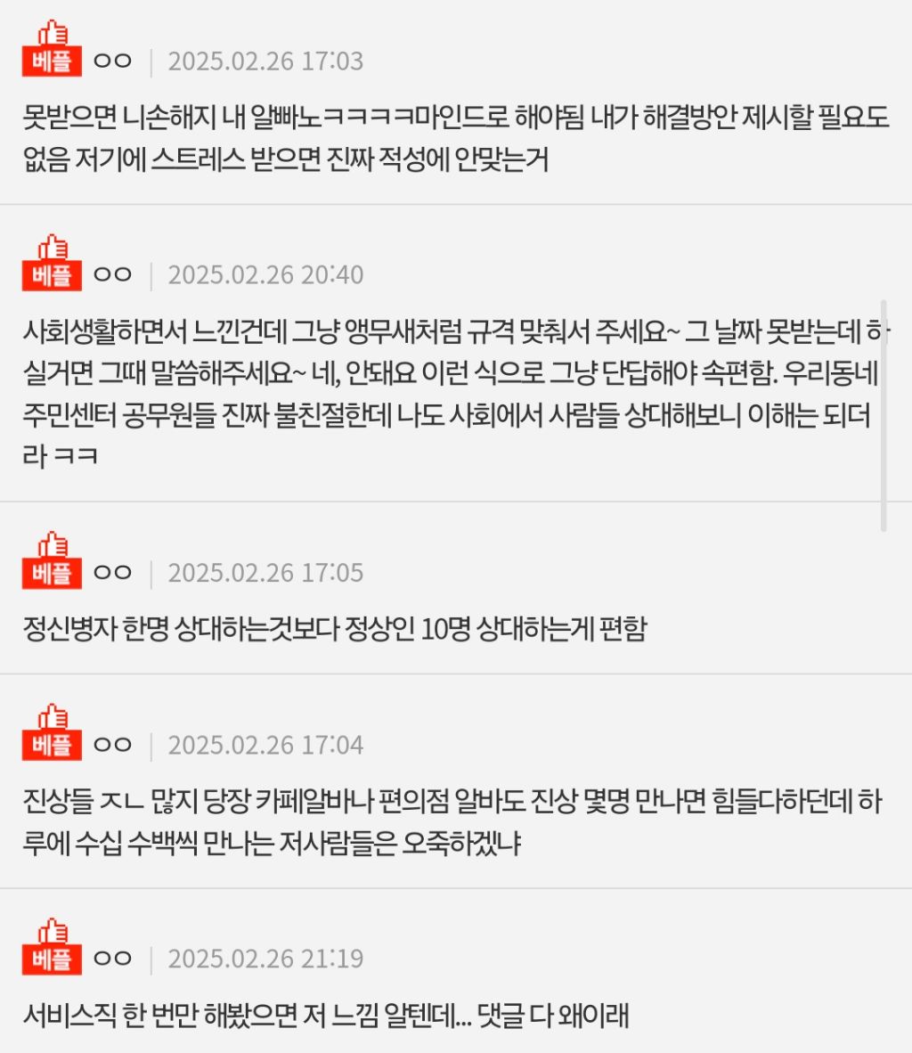 작성자봄쭈꾸미 작성시간 25.03.12 이런 일화 많이 듣다보니 공무원들 딱딱하고 영혼없는거 이해가됨