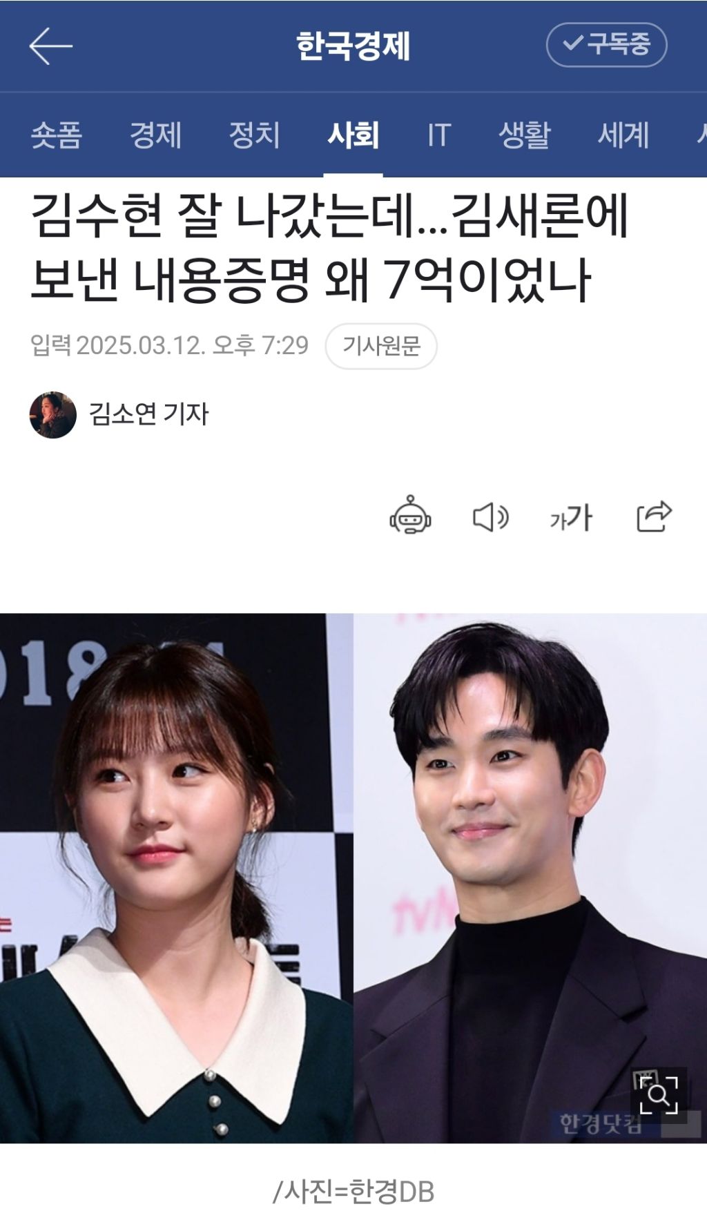 12일 한경닷컴 취재결과 김새론의 전 소속사이자 배우 김수현이 이종사촌형 이로베(활동명 이사랑)가 함께 설립한 골드메달리스트는 지난해 3월 김새론에게 7억원을 전액 변제하라는 내용이 담긴 내용증명을 발송했다. 이를 두고 골드메달리스트 측은 "형식상의 절차"였다는 입장인 것을 뒤늦게 김새론에게 전달한 것으로 파악됐지만, "김새론이 사진을 올리기 전까지 김수현과 골드메달리스트 측에 연락이 닿지 않아 압박감을 느꼈다"는 공통된 증언을 확인했다.