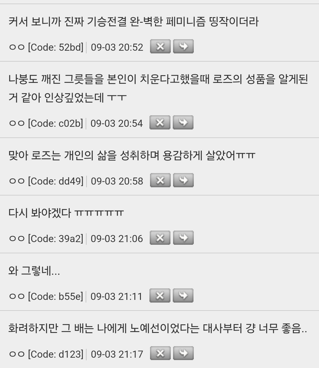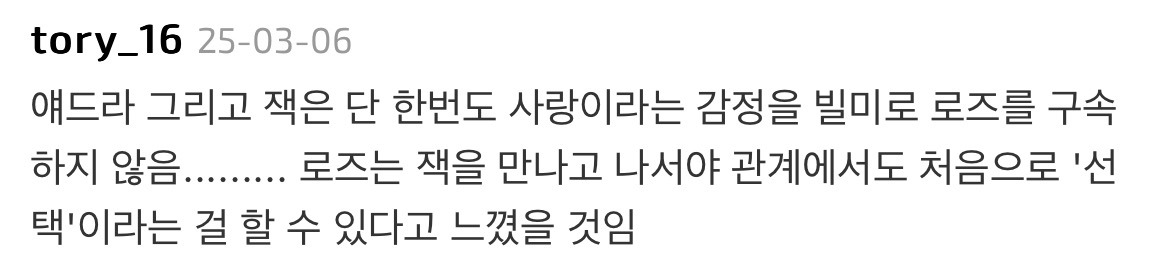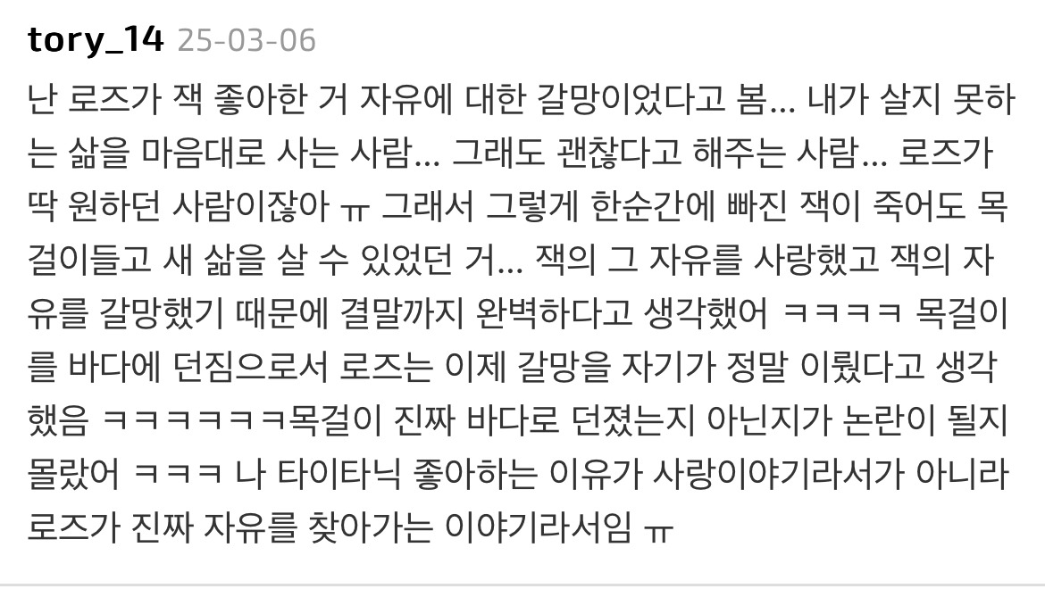작성자배움을 갈구하는데유 작성시간 25.03.13 이래서 내가 마지막 저 사진 나올때 눈물 겁나 흘렸나봐.. 자유로운 로즈