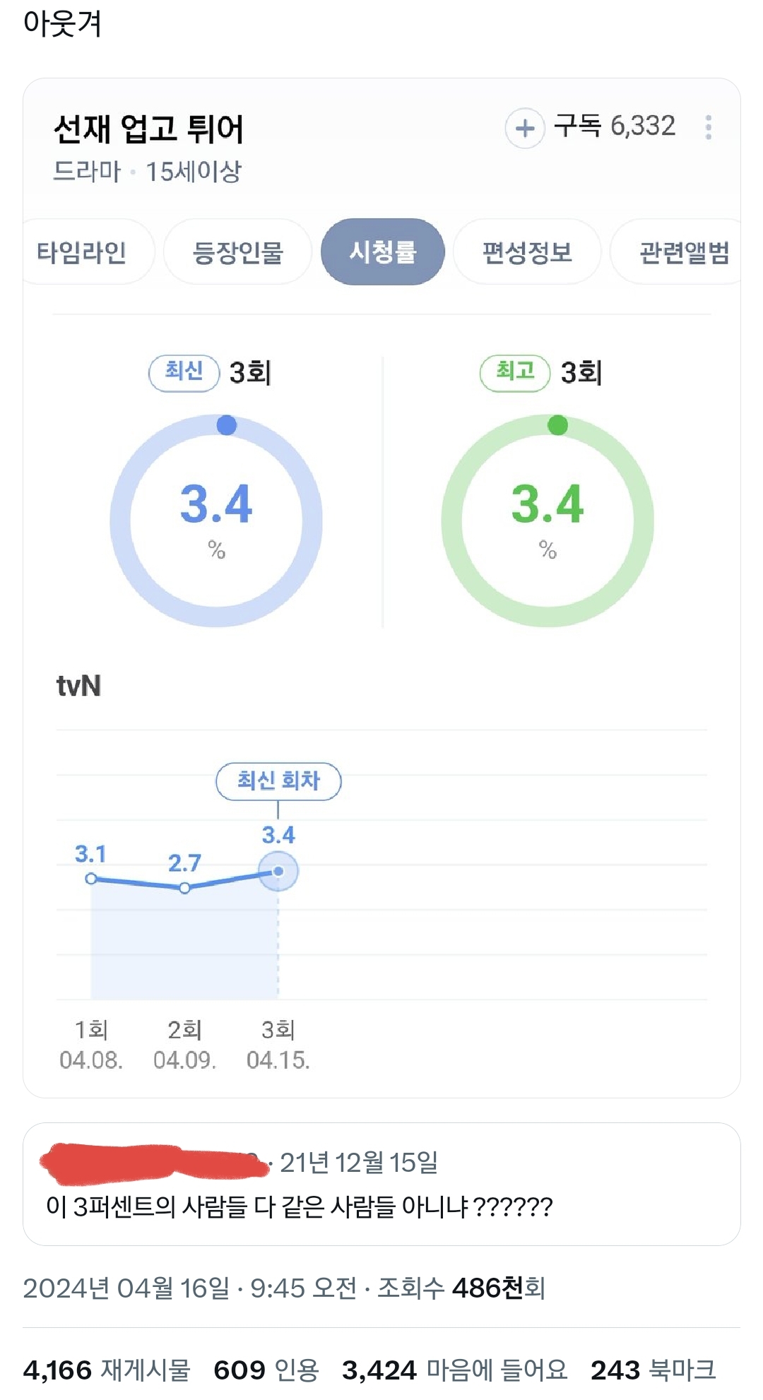 존잼드라마인데 시청률이 3퍼밖에 안된다고? 가 아니라