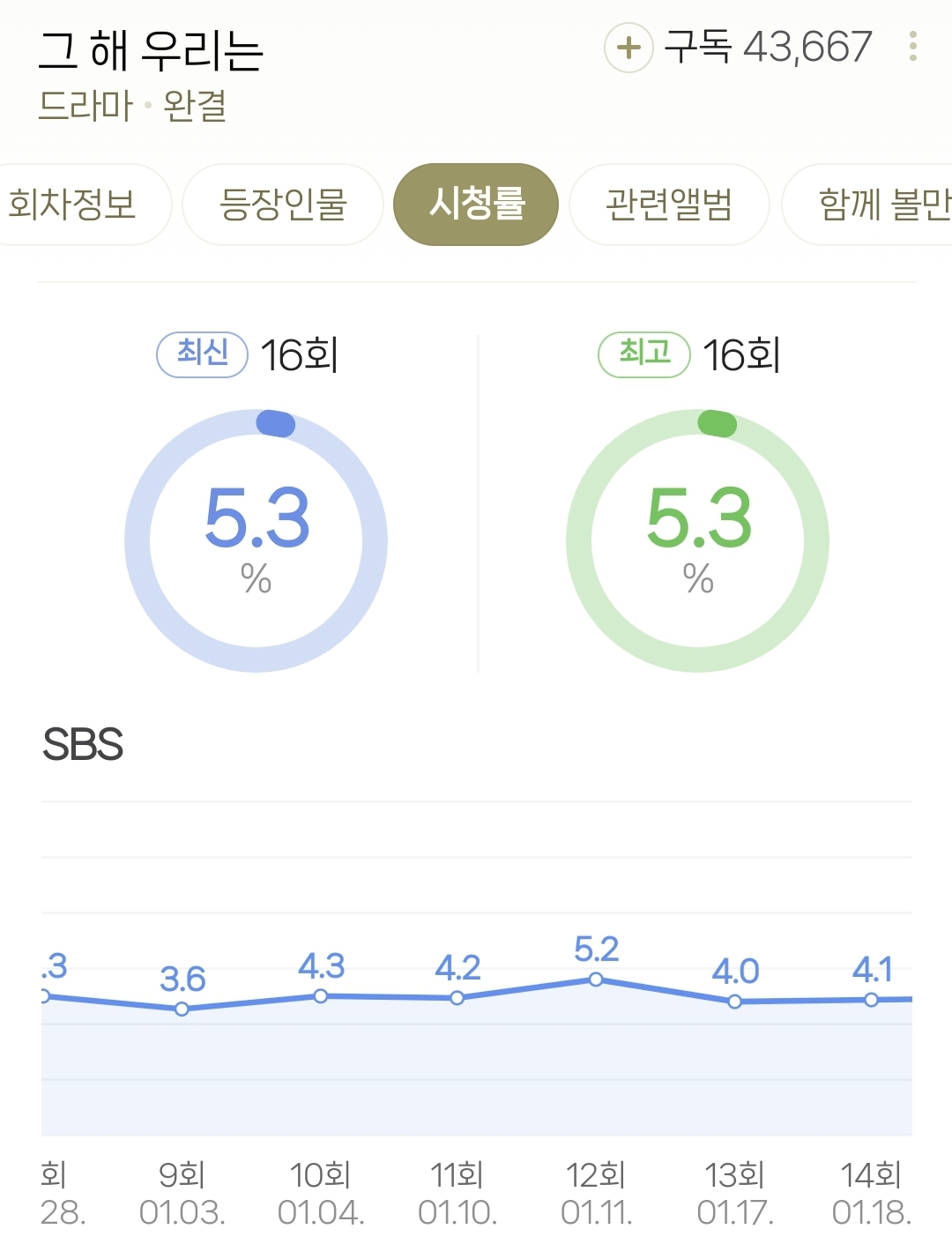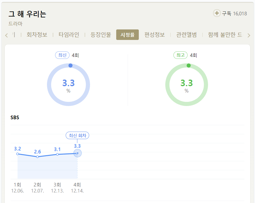 (+) 그 해 우리는은 3퍼로 시작해서 4~5퍼로 종영함!