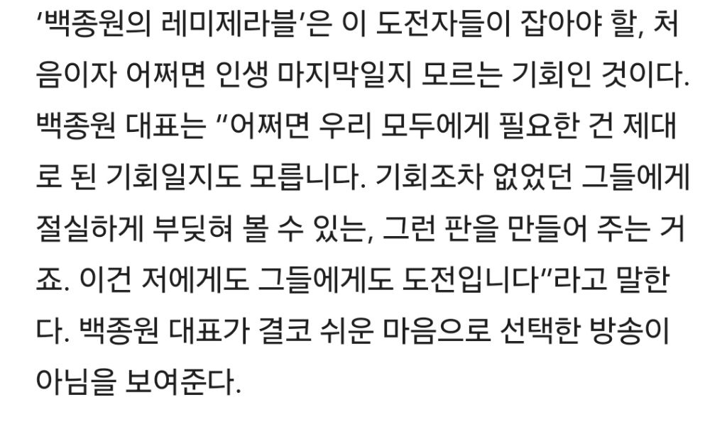 [흥미돋]백종원, '소년범 출연 논란'에 "기회 없던 이들에 판 만들어줘야" (레미제라블) 작성자헉스파리업|작성시간25.03.13|조회수3,379 목록 댓글 14 글자크기 작게가 글자크기 크게가 출처: https://v.daum.net/v/20241118115229446백종원, '소년범 출연 논란'에 "기회 없던 이들에 판 만들어줘야" (레미제라블)(엑스포츠뉴스 이창규 기자) ‘백종원의 레미제라블’은 백종원에게도 도전이다. 30일 ENA ‘백종원의 레미제라블’이 첫 방송된다. ‘백종원의 레미제라블’은 짧지만 강렬한 서사를 담은 20인v.daum.net 다음검색 현재 게시글 추가 기능 열기 북마크 공유하기 신고 센터로 신고 댓글 댓글 14 댓글쓰기 답글쓰기 댓글 리스트 작성자오빤키도작으면서 | 작성시간 25.03.13 ㅋ 작성자왕왕왕왕왕왕왕월 | 작성시간 25.03.13 피해자가 보면 트라우마 생기것는디?? 작성자얄라리 얄라 얄라셩 | 작성시간 25.03.13 저 프로부터 정 떨어지긴했어 작성자아름드리 | 작성시간 25.03.13 그냥 단순히 돈미새였네… 작성자내것이었더어언 | 작성시간 25.03.15 지랄 댓글 전체보기